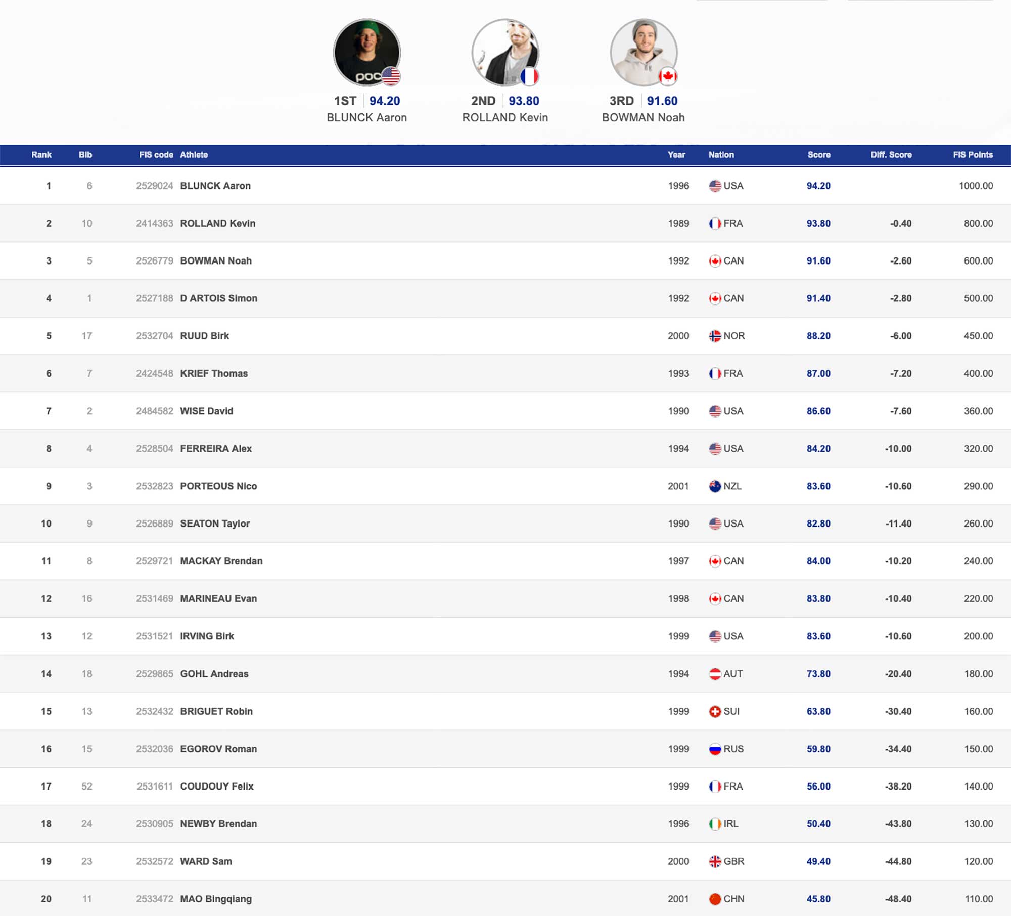 The men’s battle for the men’s bronze came down to a super tight contest between two Canadians, Noah Bowman and Simon d’Artois. “The pipe was sick,” d’Artois said. “You could just roost in it. It was really good.” But in the end, Bowman bested his countryman by just two-tenths of a point. “This feels amazing,” Bowman said. “This is probably the happiest I’ve ever felt with a result like this. I just – I really skied as well as I possibly could today and it feels so good just to be on the podium.”