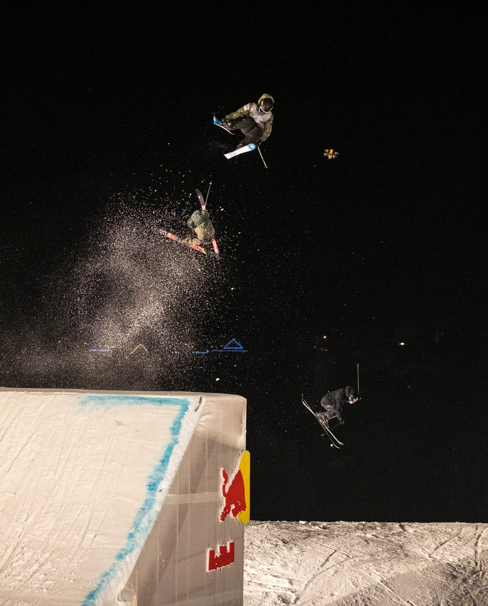 There was one more thing happening on Friday, and that was the Night Attack: a team session to put on a show for the big crowd. Teams were made of three skiers, who dropped into the kicker or the knuckle at the same time. After a really nice show, the judges decided to give the win to Team Whateverest: Jesper Tjader (SWE) who was sending insane dub 16s, Voita Bresky (CZE) with dub 7s and switch dub 9s, and Daniel Hanka (CZE) spicing it up with stylish lazyboy 360s.