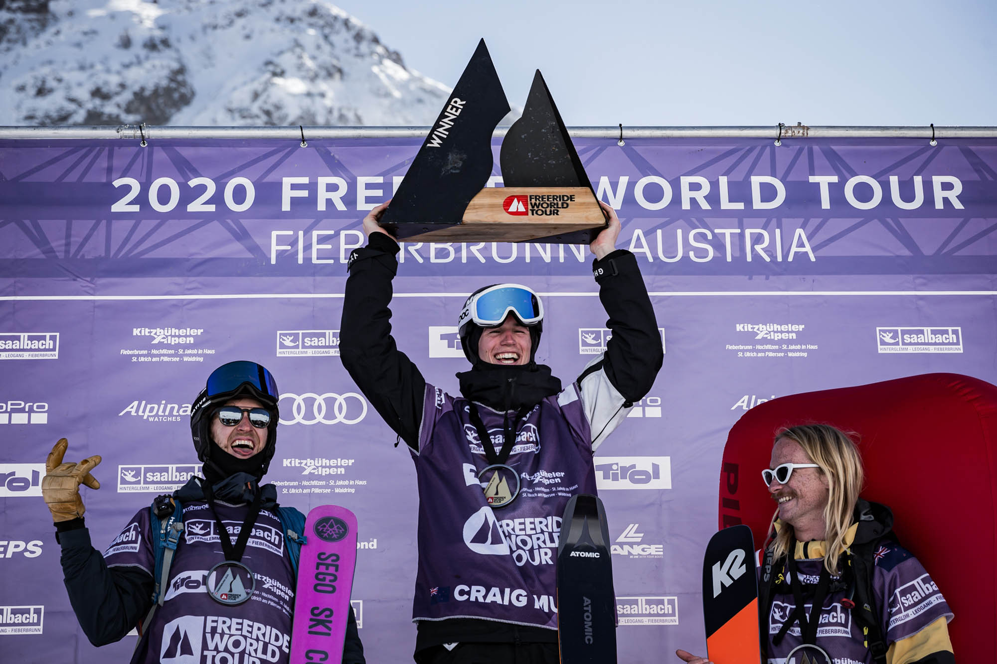 Fieberbrunn 2020 men´s ski podium: Craig Murray, Isaac Freeland, Hank Bilous. Photo: Dom Daher/FWT