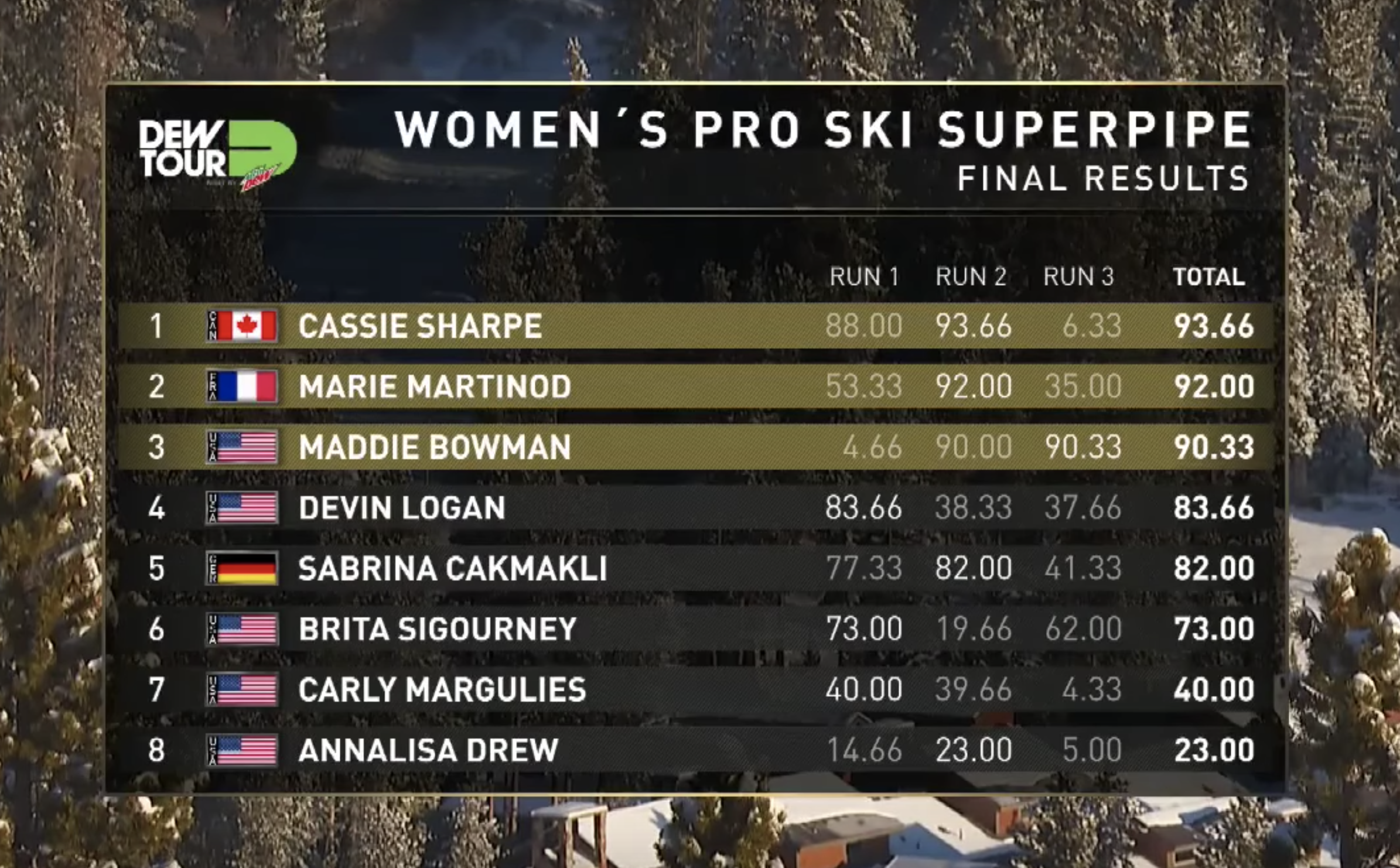 Dew Tour Women Ski Superpipe Results