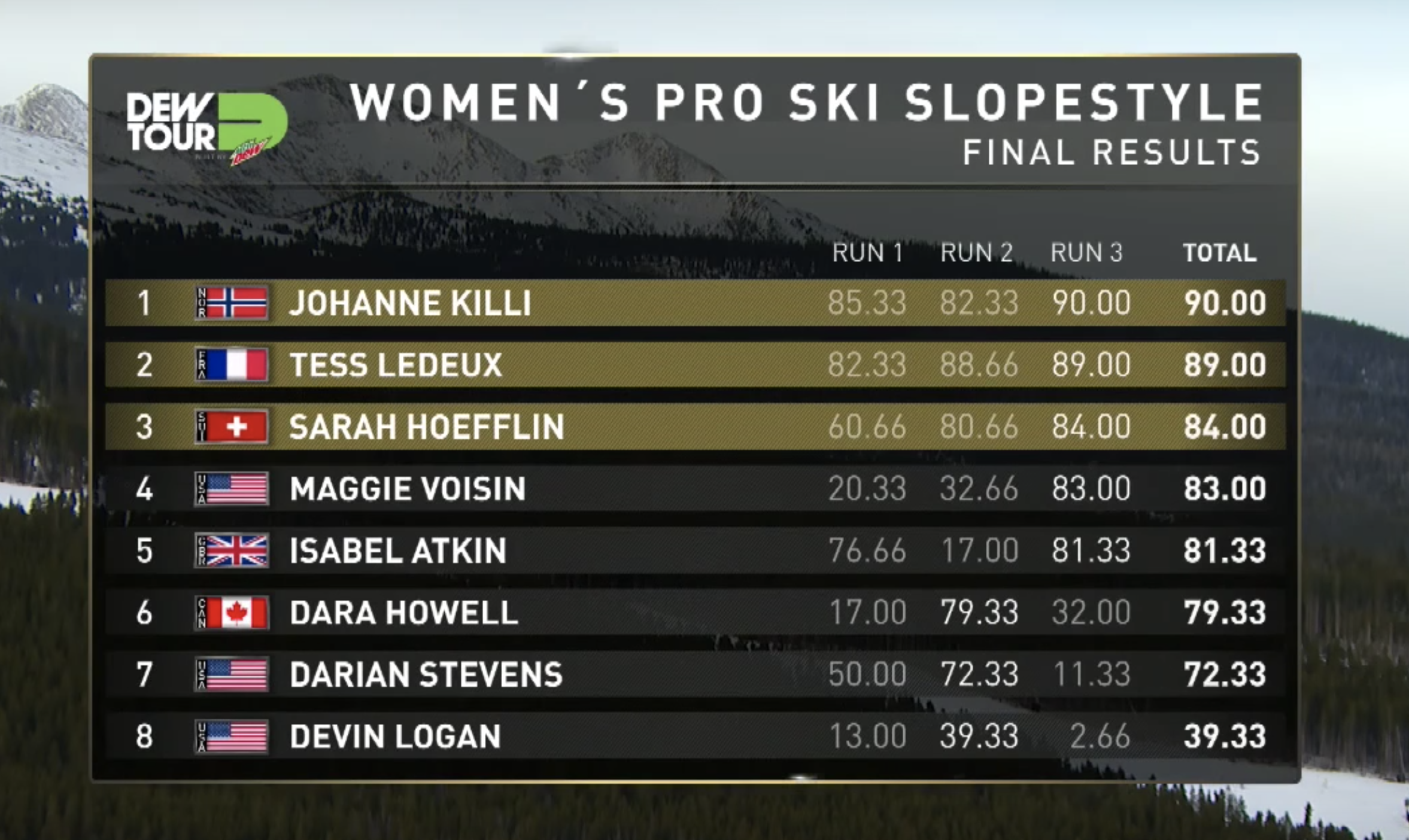 Dew Tour women´s Ski Slopestyle Results