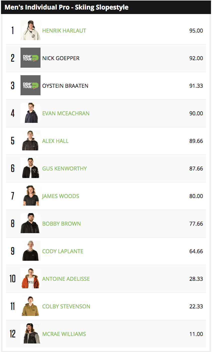 Dew Tour Men´s Ski Slopestyle Results