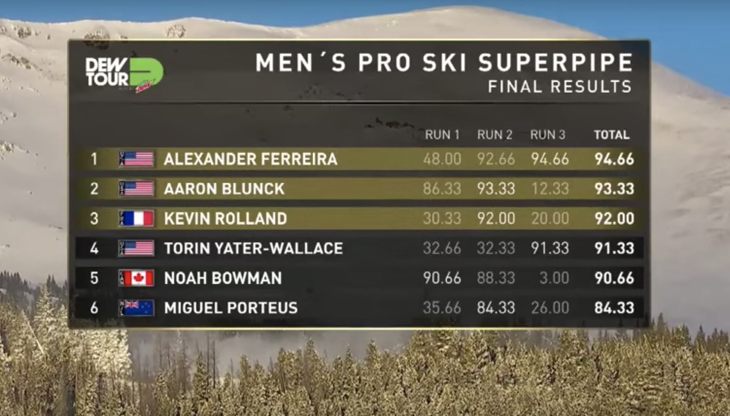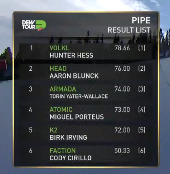Dew Tour Men Ski Superpipe Results
