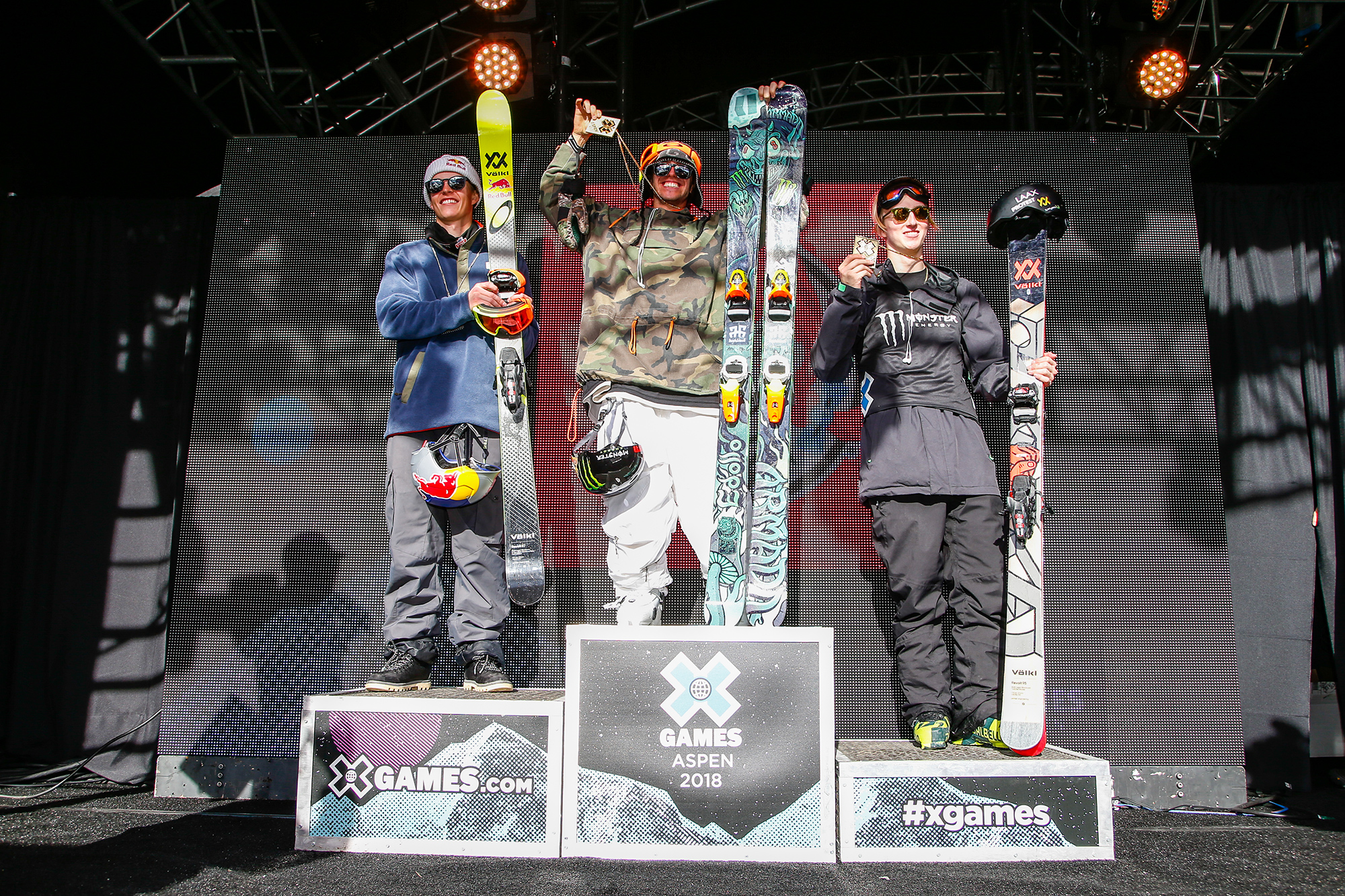 Harlaut, Bråten, Ragettli: Your 2018 Winter X Games men´s ski slopestyle podium. Photo: Eddie Perlas/ESPN Images