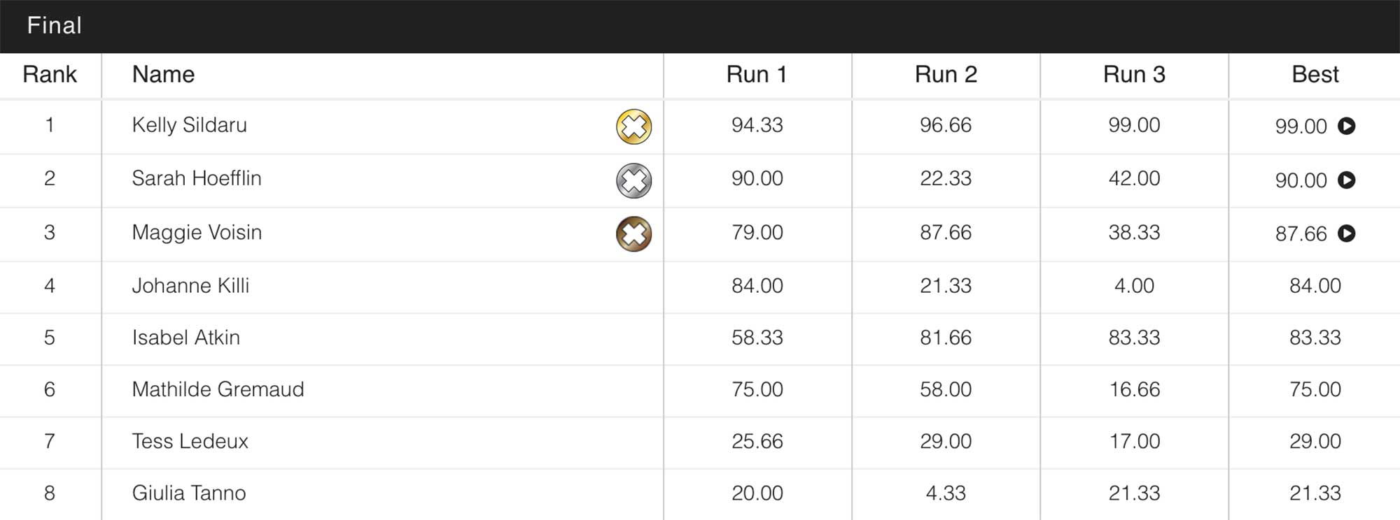 Women´s Slopestyle Final Results