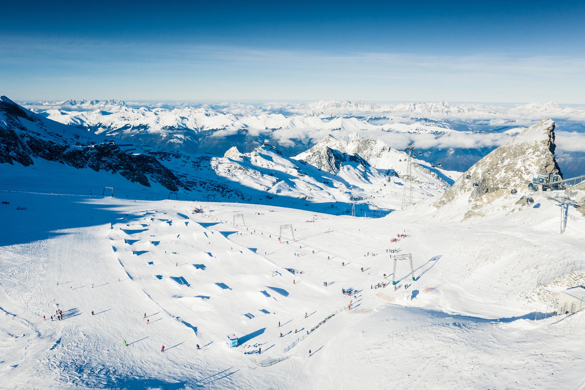 Starting on October 16 and if snow conditions allow, freestyle snowboarders and freeskiers enjoy a creative set-up at Glacier Park on the glacier plateau until January 2022. The multifaceted elements of Easy Kicker Line, Medium Kicker Line and the Jib Lines are ideal for training new tricks or improving your skills. The experienced shaper team guarantees the world-class quality of the “skatepark of snow” and the other snow parks at the Kitzsteinhorn.