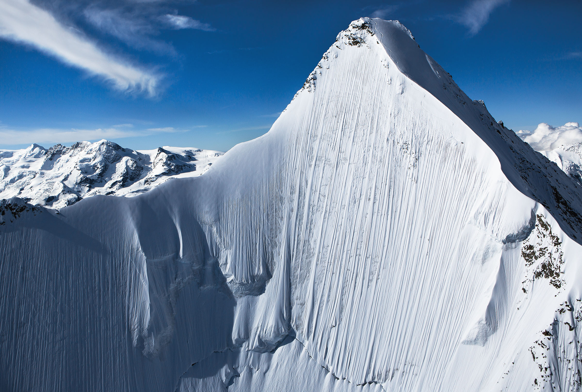 The Lenzspitze Northeast face is a perfect ice face; almost completely smooth from top to bottom. I skied this descent together with Samuel Anthamatten. The conditions in that face were so perfect that we decided to ski it together. It was pretty much a party shred!