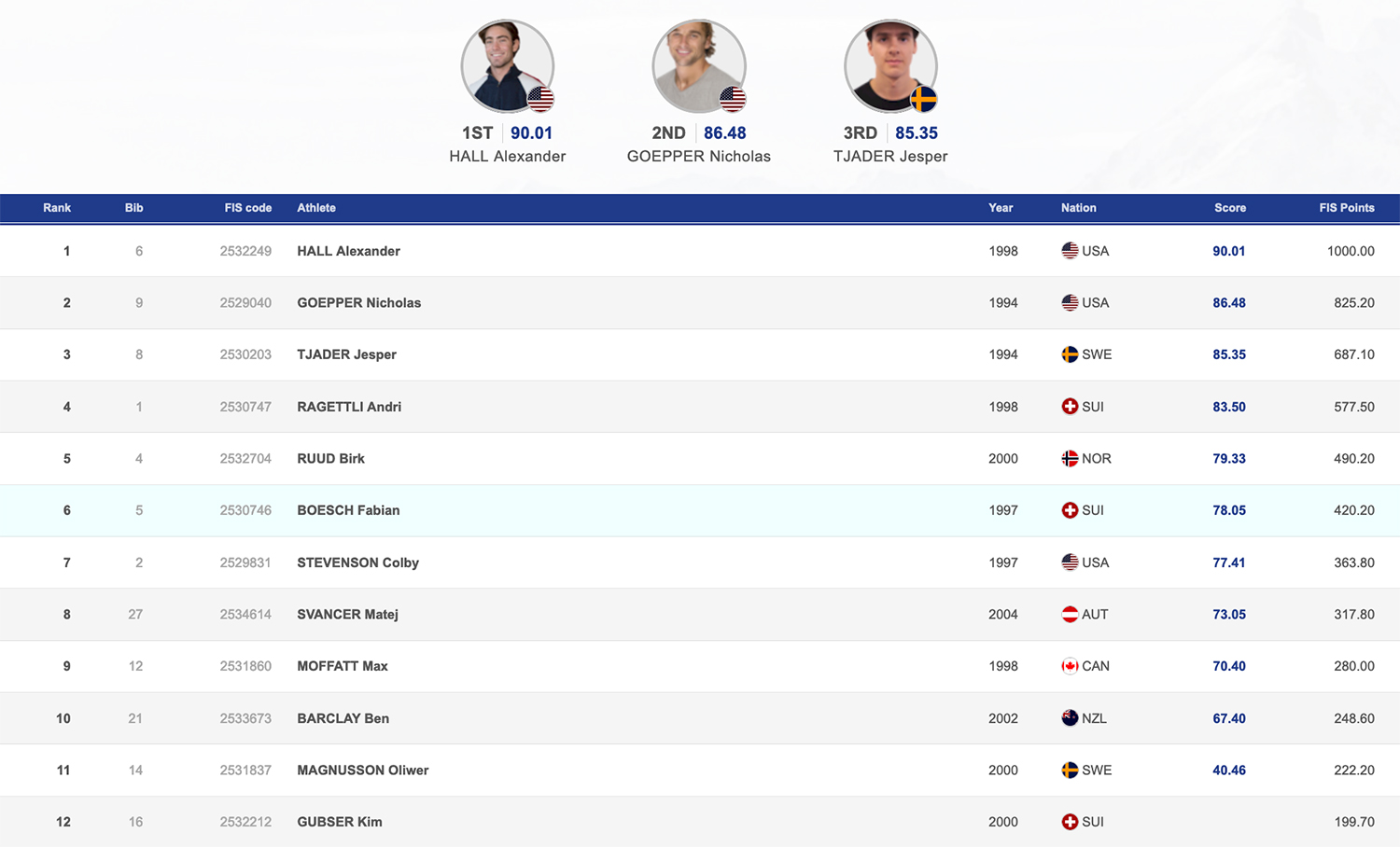 Usually known for choosing more creative lines, Jesper Tjäder kept things remarkably “normal," and the strategy paid off with a bronze medal. Although one can’t help but wonder, seeing how Alex Hall’s creativity paid off: Would Jesper have scored even better with a more Jesper-like run? Be that as it may, the Swedish star finally has a very big podium result to show for his many years on the contest grind.