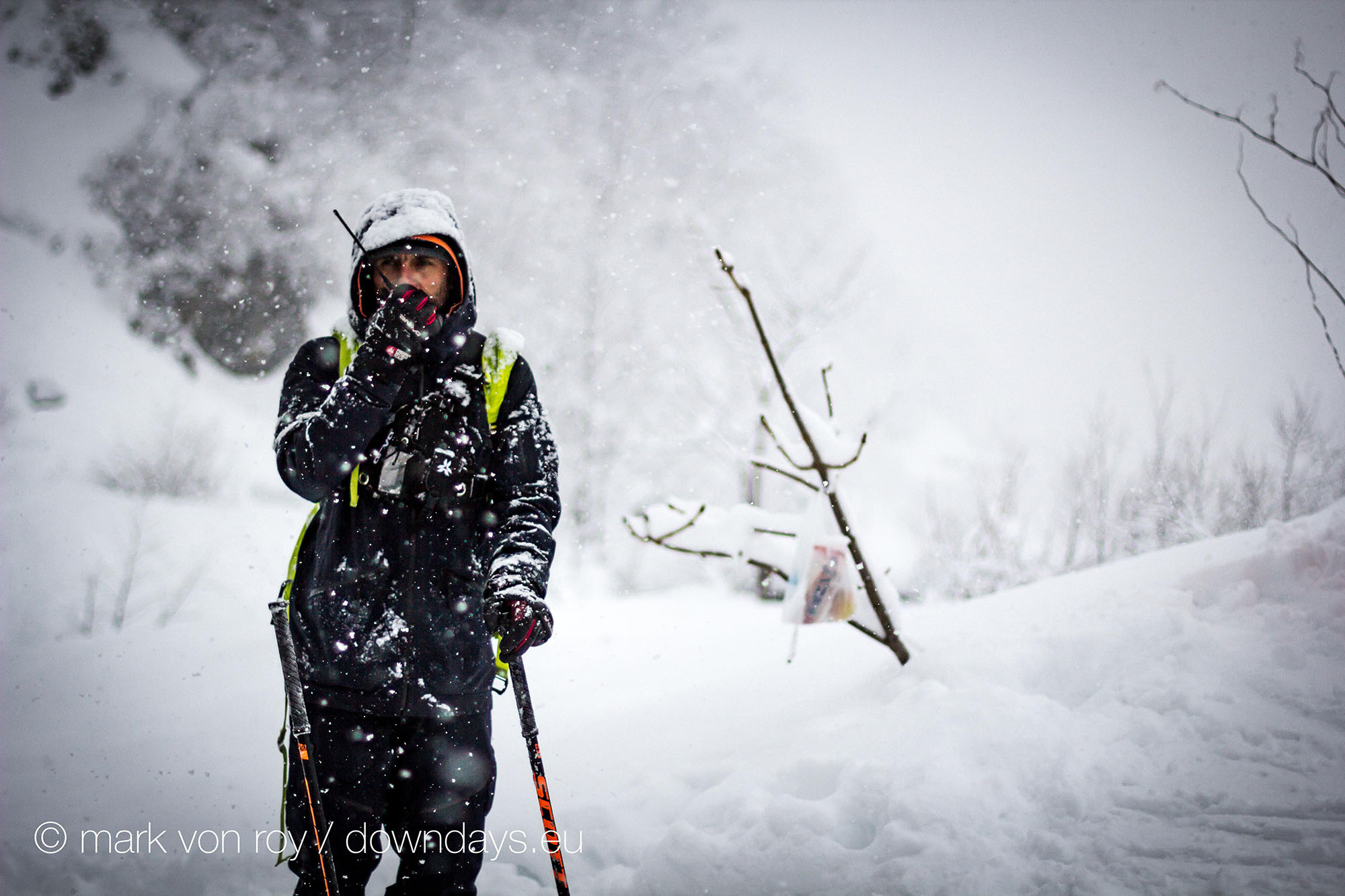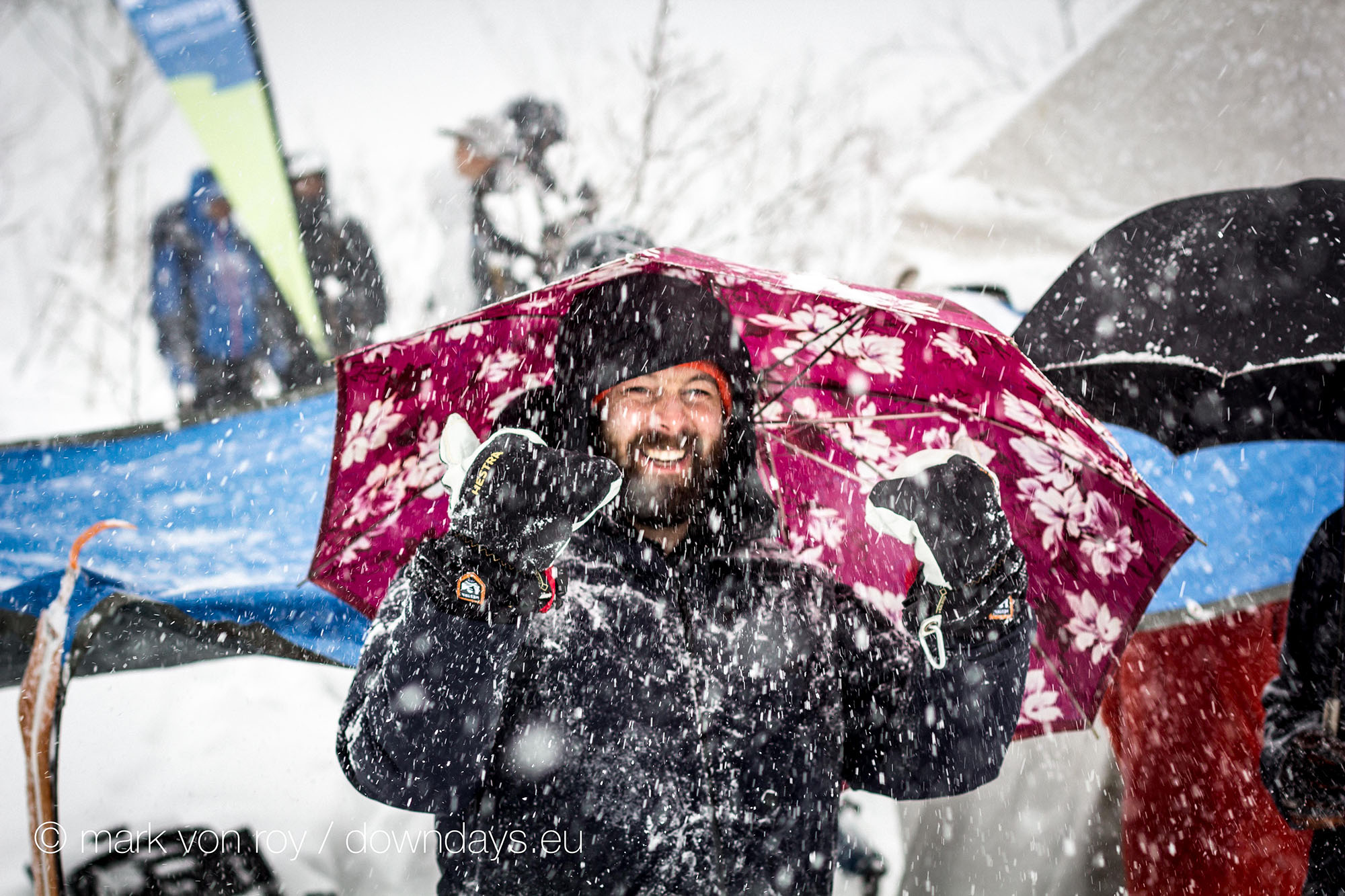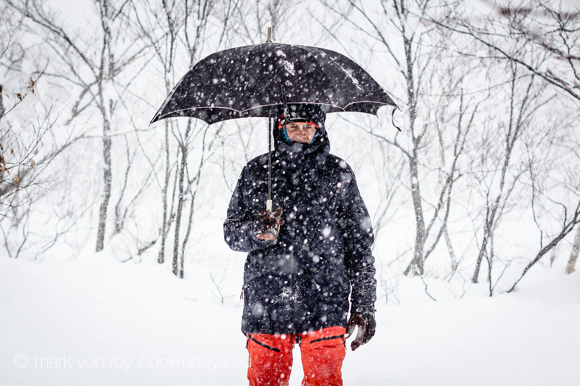 It is stormy as hell here in Hakuba, which is a blessing for me and everyone else here who loves faceshots, but a curse for the organizers of the Freeride World Tour. First, the competition planned for Tuesday had to be postponed. Organizers, athletes and everyone involved gave their all to make it happen, but Mother Nature didn’t want to play along as clouds socked in the venue with impossible visibility. Even though everyone was up and hiking up the mountain well before sunrise, ready to go, the hoped-for window never appeared, and after five hours of waiting, the contest had to be put off.