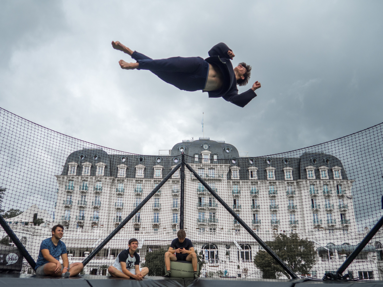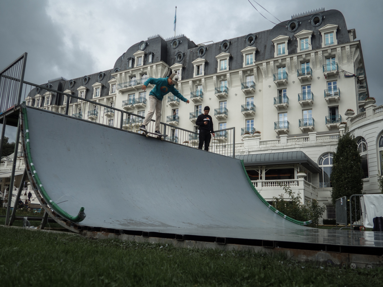 Saturday passed in a flash. We made a plan for the day, but didn’t make half of what we wanted to see. The High Five’s festival grounds are a 20-minute walk from the cinema along the shore of Lake Annecy. Activities were set up in the gardens outside of the Imperial Palace, and the brand village was just next to it. Inside it was crowded just like the slopes during winter holidays. Everybody was there for signing sessions or to try to win something from the brands. Outside was more chill—they had a big air bag, a skate ramp, trampolines, slack lines, an outdoor cinema, a stage for concerts, food trucks, and even a big raclette party in the middle of all of it.