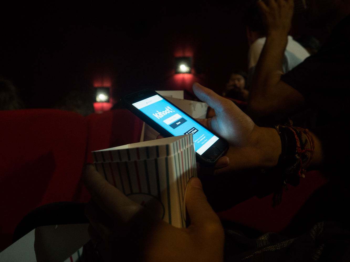 During our first movie session, we tried our luck with the High Five quizzes. The winner takes home a pair of skis, so we were motivated. You take your phone, open Kahoot and try to answer the quiz questions as fast as you can. That was really entertaining, since everybody in the theater was playing at once. You have to imagine it: hundreds of people playing a ski quiz at the same moment in four different cinema theaters. That was fun as hell.