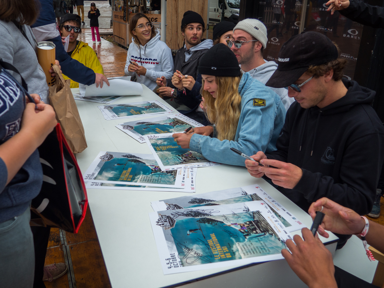 Coming back from the movies, I felt so lost. I’d watched many things that I couldn’t even remember each movie anymore. In a nutshell, we watched nearly five hours of ski movies—and that was less than a quarter of what was shown at the festival! Some of the most memorable moments were the crash reels, which help to remind you that we do a sport for psychos—but passionate psychos who will get up and try it again and again, even if it hurts. Sometimes, it’s something you don’t want to watch on screen (for real). The day had been exhausting—but the night was just getting underway. In the front of the hotel, all the riders that we’d seen on screen all day were hanging out and chilling. It was another universe. At around two in the morning, we finally made it to the party in Pop Plage.