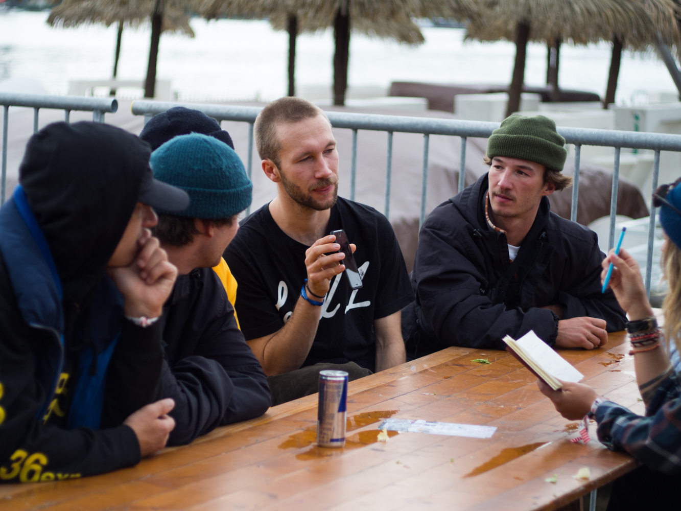 There, we talked with the Swiss crew Buldozlife and met Jeremy Pancras for some upcoming Downdays interviews. But as we were talking, we could see that we were running out of time, so we came running back to the cinema to make it on time for the new Faction movie, “The Collective.” It was 3:00pm and we hadn’t made time for lunch. Once more, we took in a bunch of thrilling movies and edits introduced by their athletes (Phil Casabon, Daniel Hanka, and a lot of riders from the Faction Collective). My photographer even won a pair of Faction skis, just by sitting in the right seat!