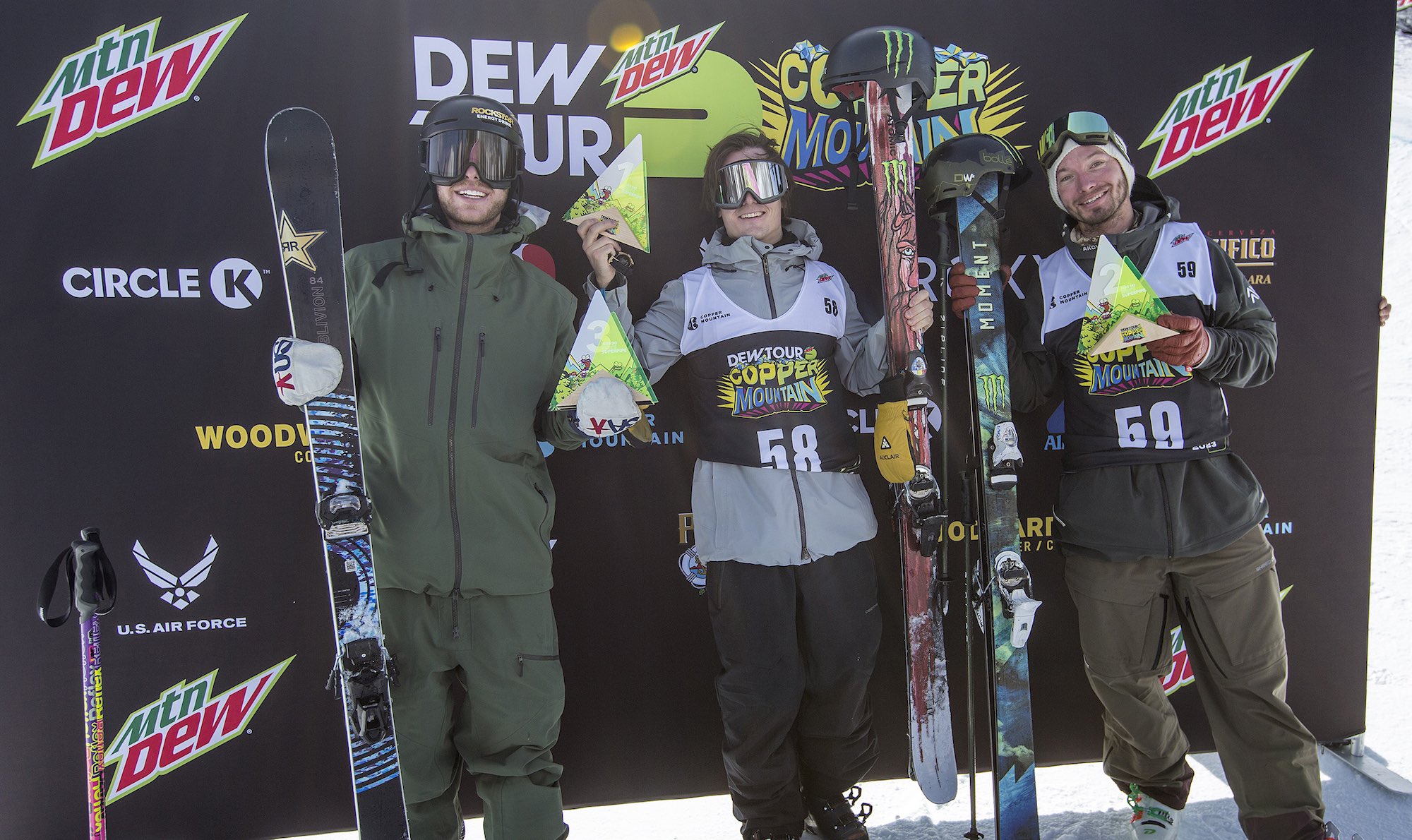 Despite many of the usual comp skiers being in Georgia, for the World Championships, there were still plenty of big names on show. Recent X Games gold medalists, Colby Stevenson and David Wise also graced the Dew Tour podium.
