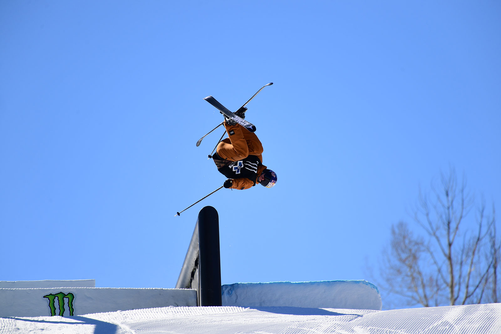 Under sunny blue skies with perfect riding conditions—a world of difference from the women’s contest the day before—the ten men selected to compete in the 2021 X Games Ski Slopestyle event threw down in a messy, unpredictable contest on Sunday, January 31.