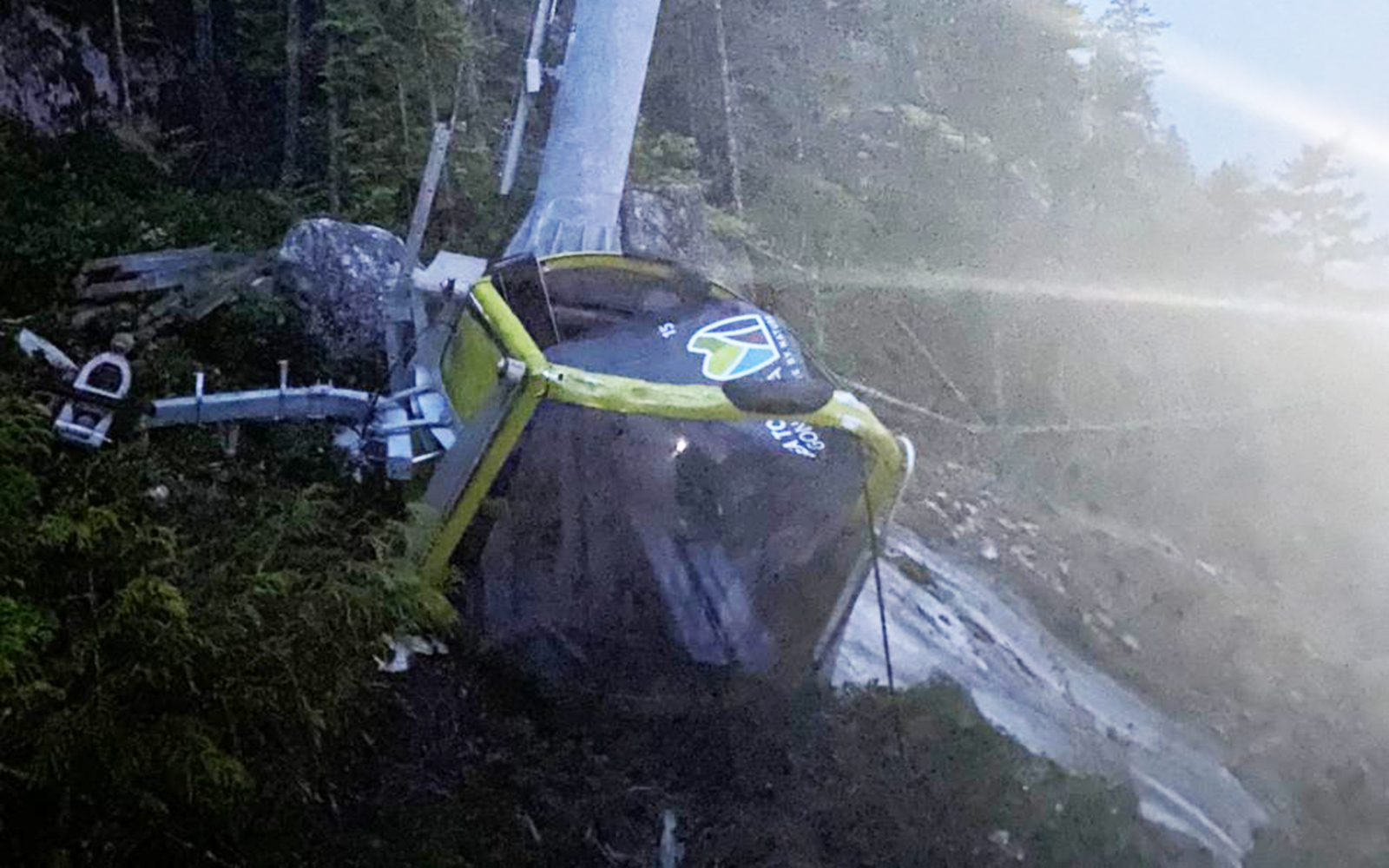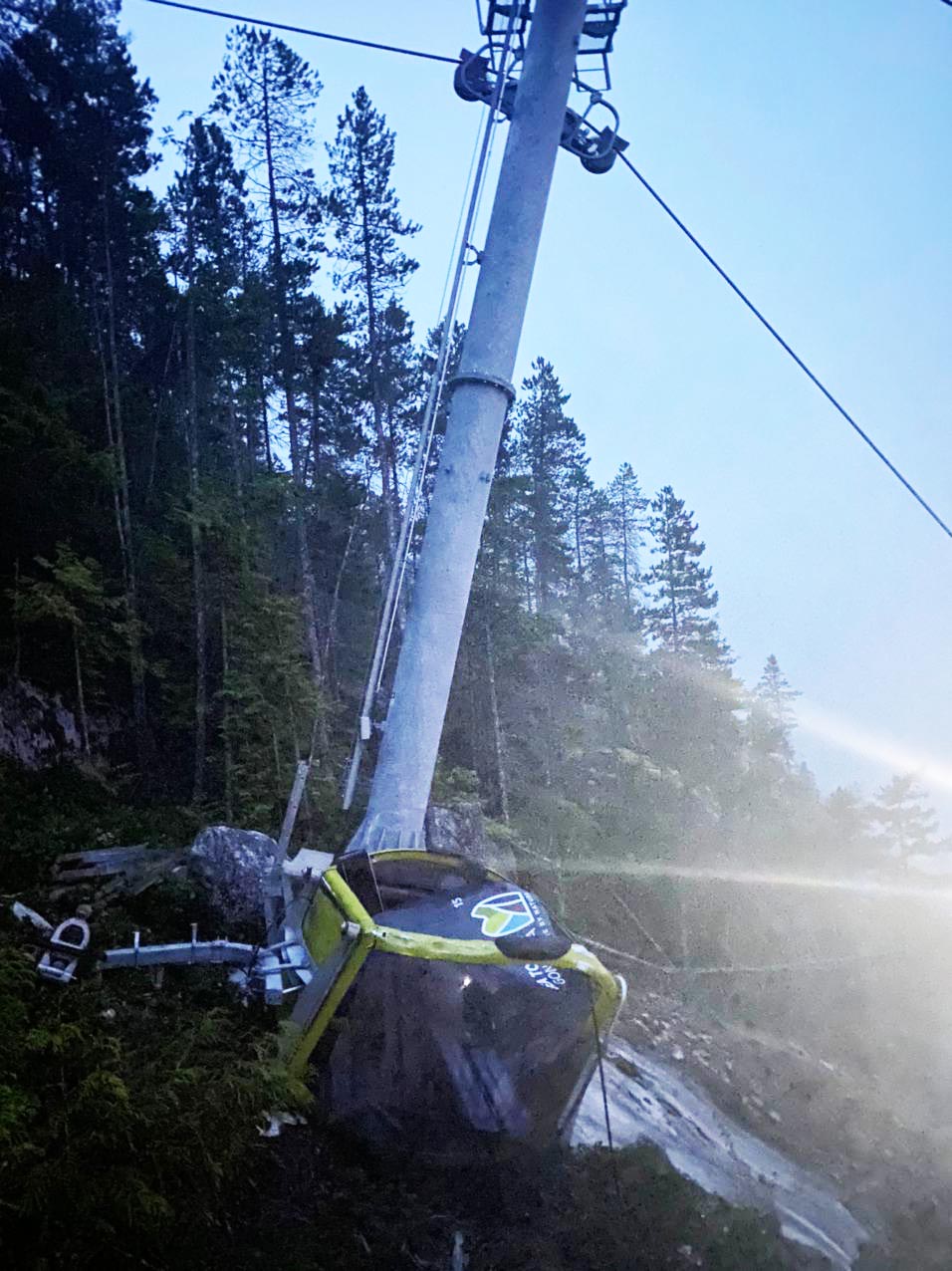 Over 30 unoccupied gondolas went down with the cable. Photo: RCMP Squamish