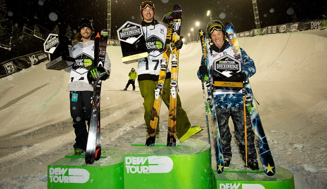 After a heavy fall of snow yesterday at the Winter Dew Tour in Breckenridge, the women’s ski slopestyle final was postponed until today, while the halfpipe was scraped clean for last night’s men’s ski halfpipe final.