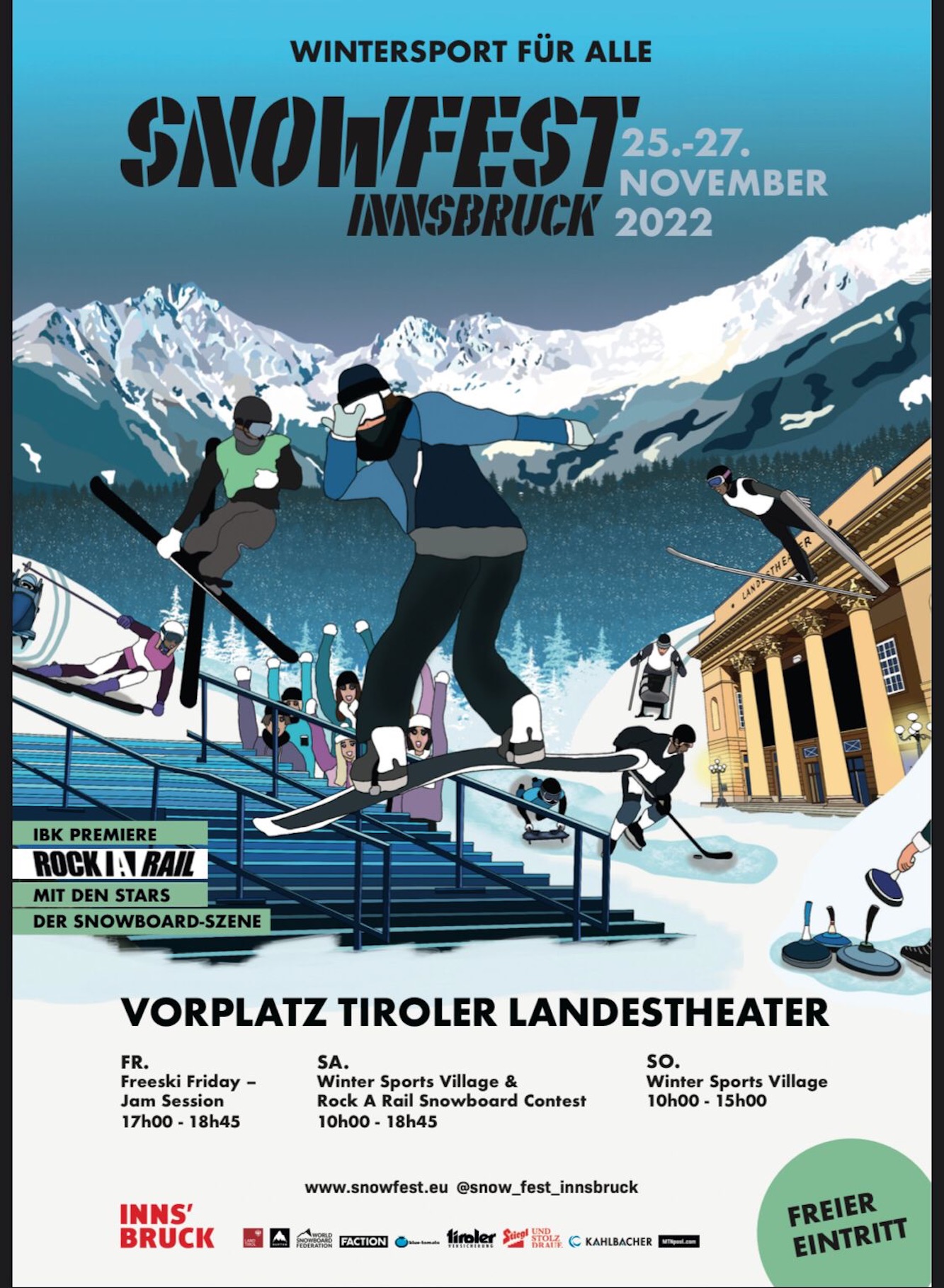 On Friday November 25, 2022, SNOWFEST INNSBRUCK will kick off with FREESKI FRIDAY Jam Session in front of Tiroler Landestheater.