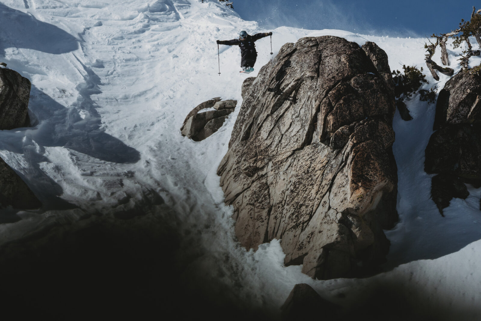 Jonah Williams in action on the Granite Chief’s face in Palisades Tahoe. Tucker Adams / Natural Selection Tour