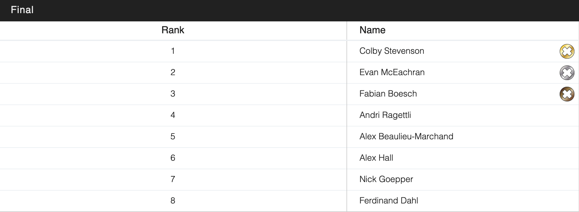 Missing the cut were big names like Alex Beaulieu-Marchand, who landed one strong run but had problems on the remaining ones; Alex Hall, who seemed uncharacteristically off his game; and Nick Goepper, who was gunning hard for the podium despite a dislocated shoulder earlier this week.