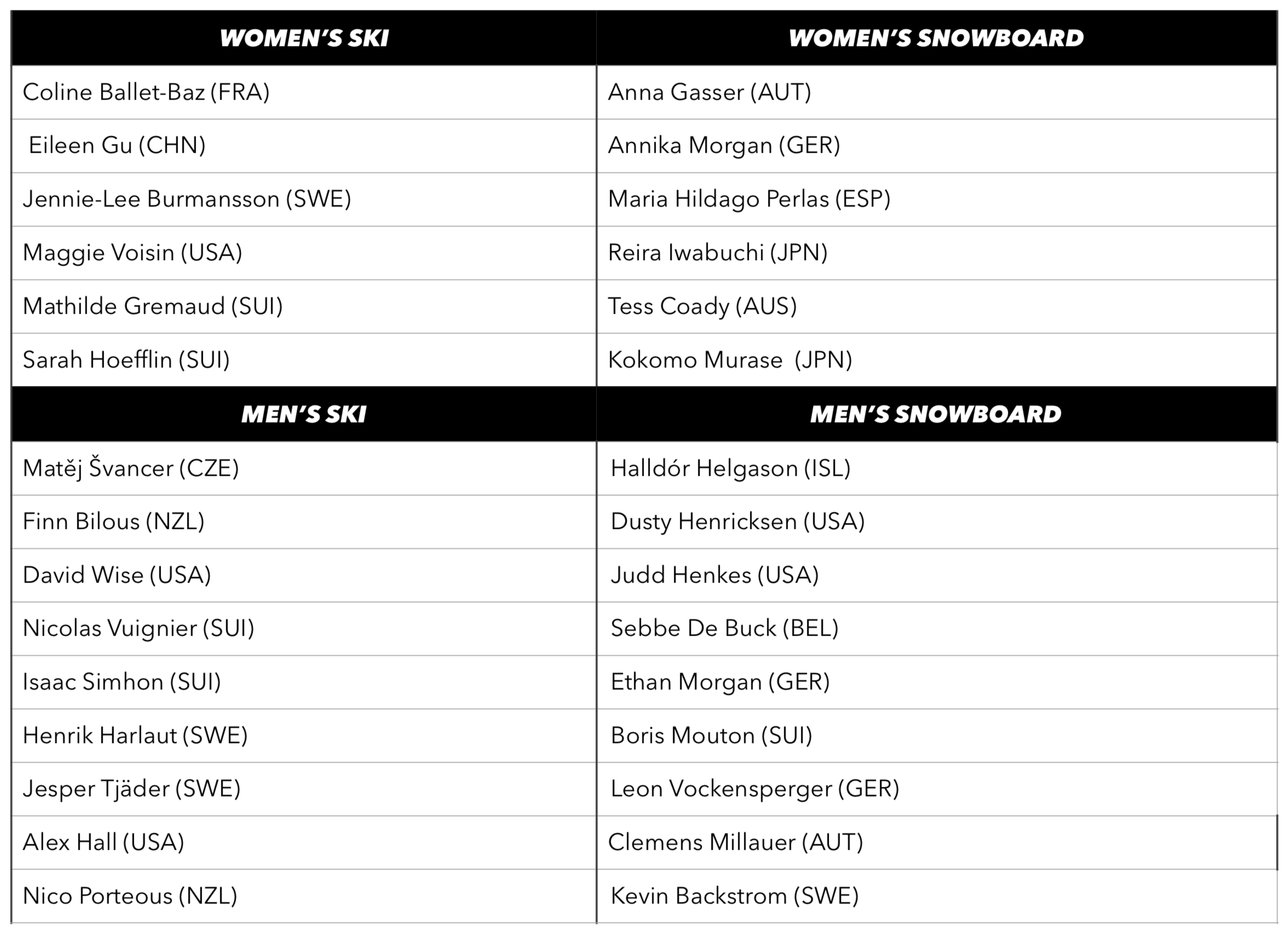 Due to pandemic restrictions, the rider’s list is somewhat curtailed this year—in fact, it’s been cut roughly in half. Nevertheless, the Nines have still lined up an all-star roster of skiers to session this creative snow playground.