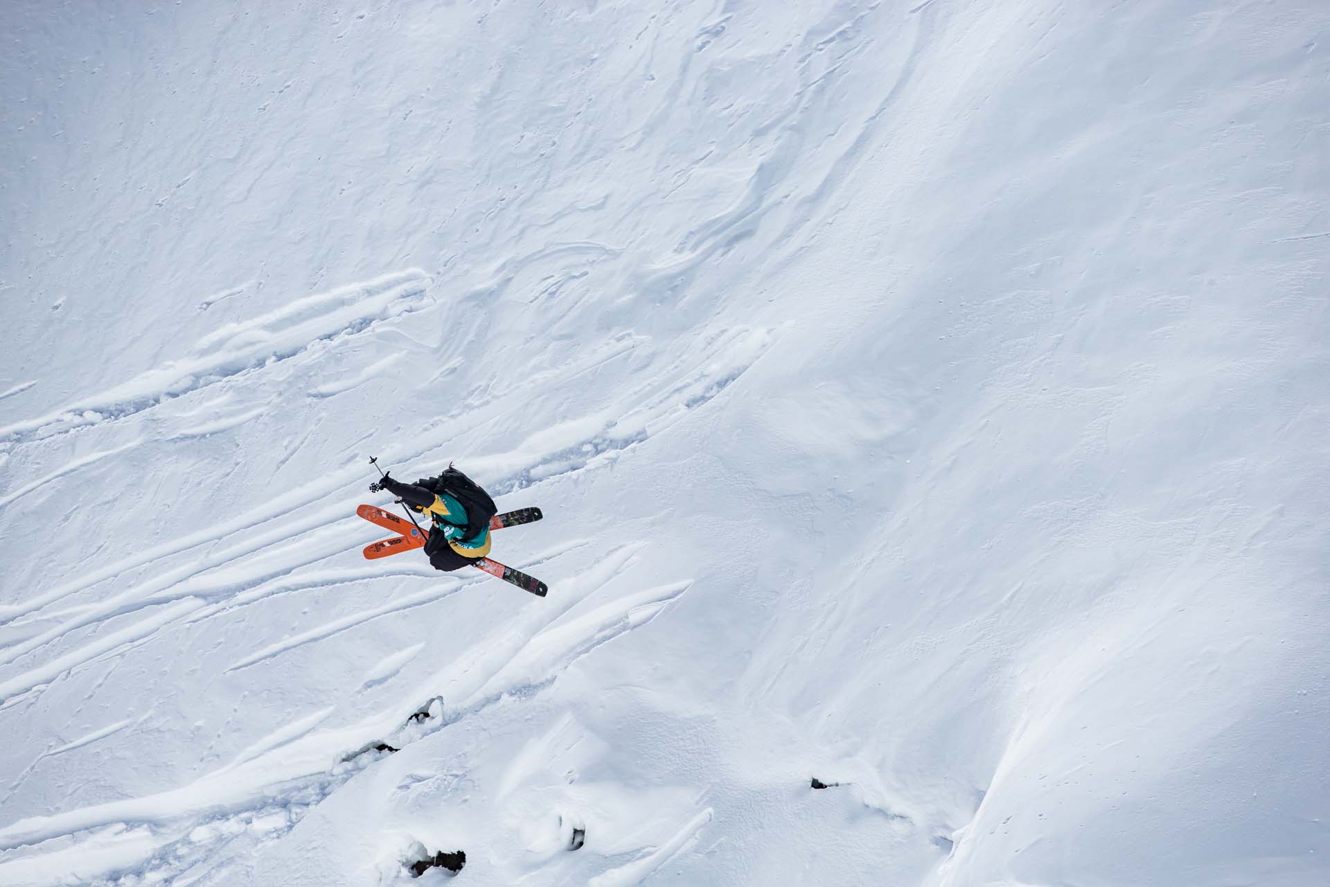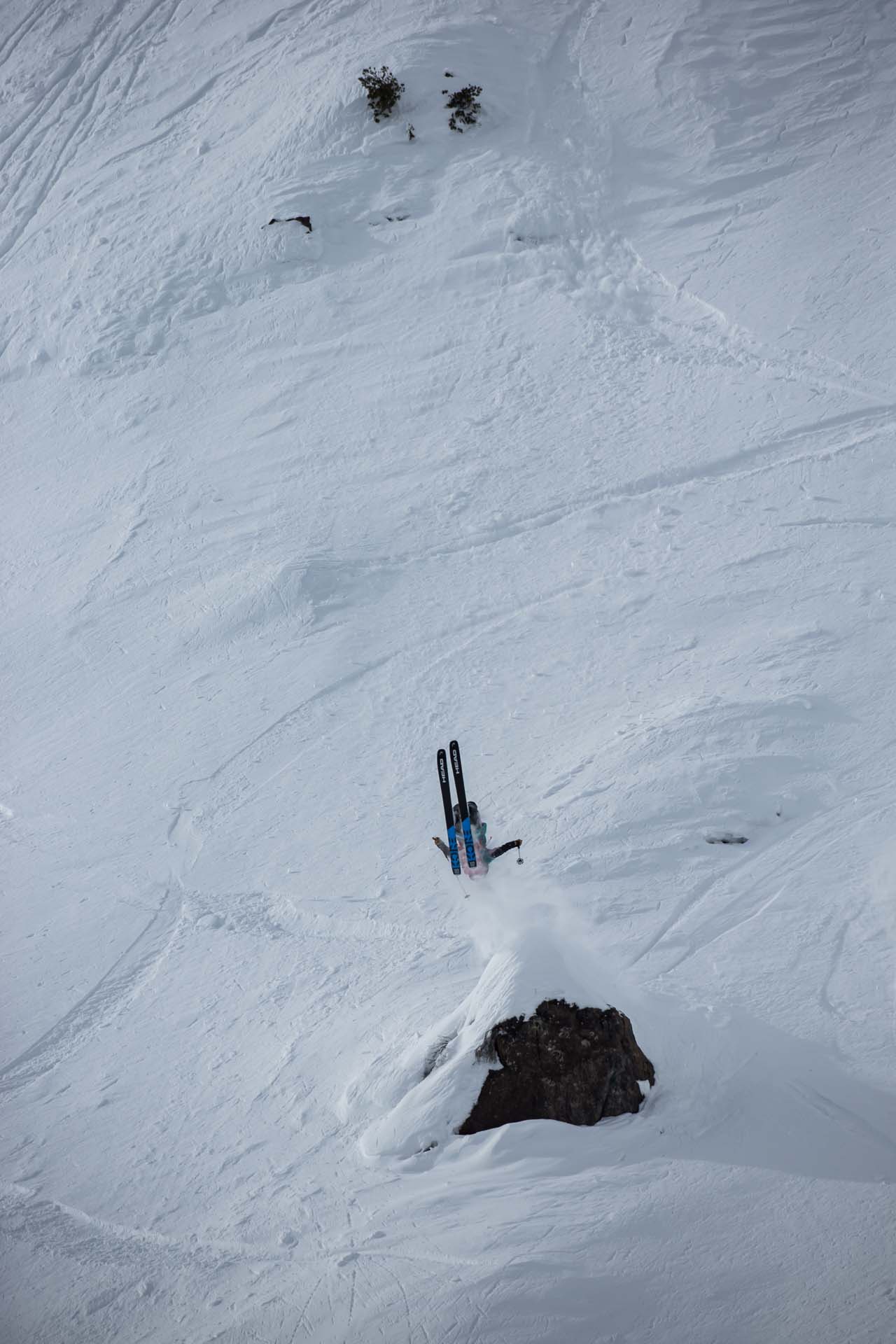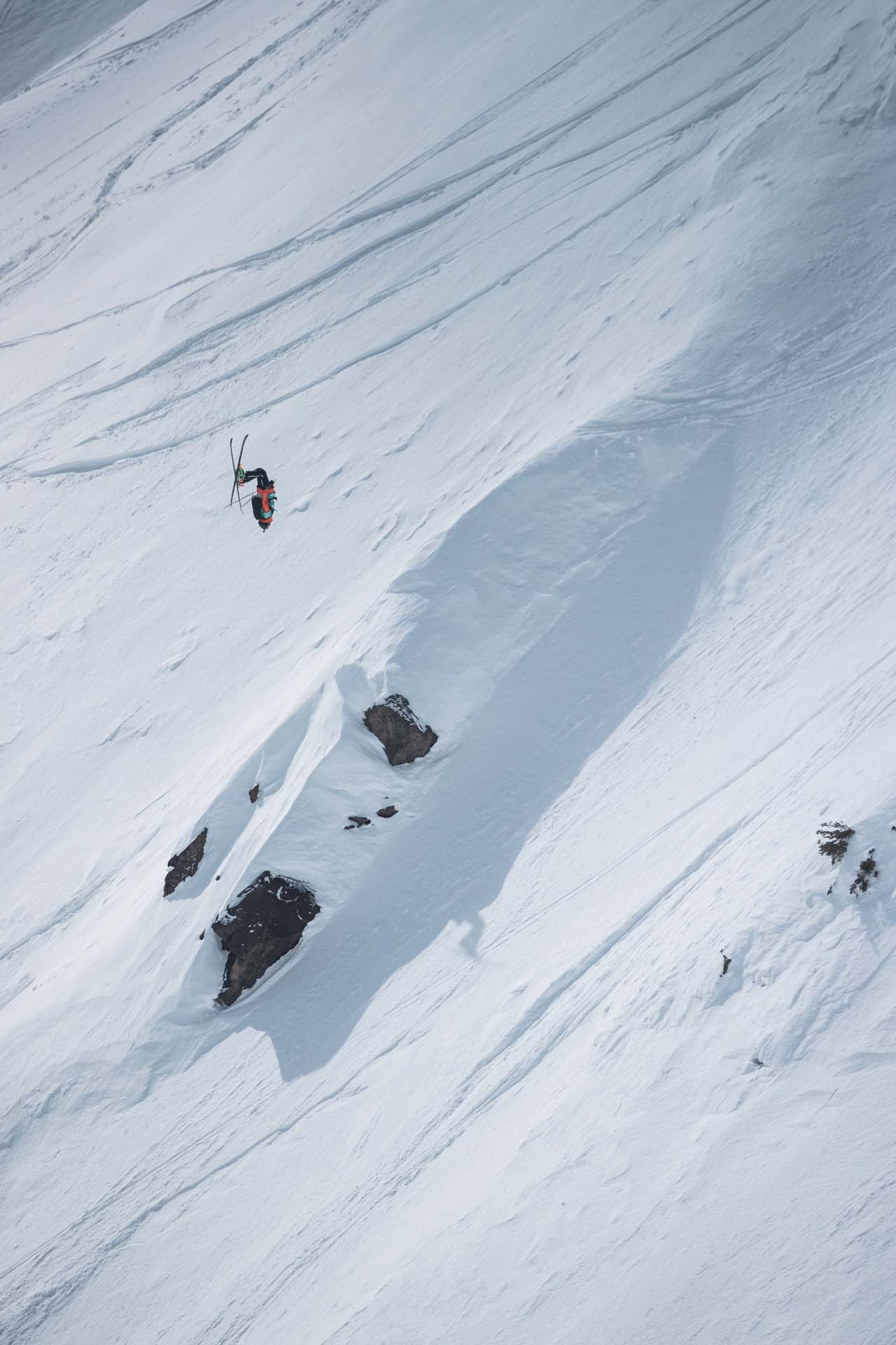 Meanwhile, FWT veteran Reine Barkered gave judges the “best of both worlds,” mixing a massive backflip up top with traditional technical big mountain skiing through the “Horseshoe” cliff band below. One of the day’s highlights came from rookie Hank Bilous of New Zealand, who started his run with a frontflip off the ridge, then proceeded to gap an entire couloir on a cross-hill transfer air, linked immediately into a 360 for good measure. His explosive run landed him in second place.