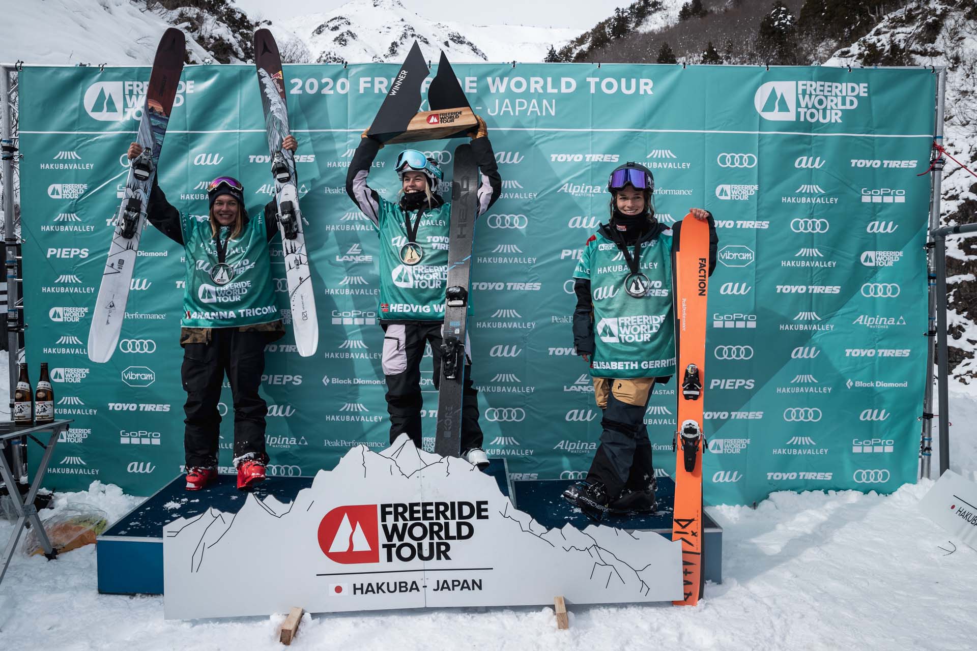 Hakuba FWT women´s podium: Hedwig Wessel (1), Arianna Tricomi (2), Elisabeth Gerritzen (3). Photo: Jeremy Bernard/FWT