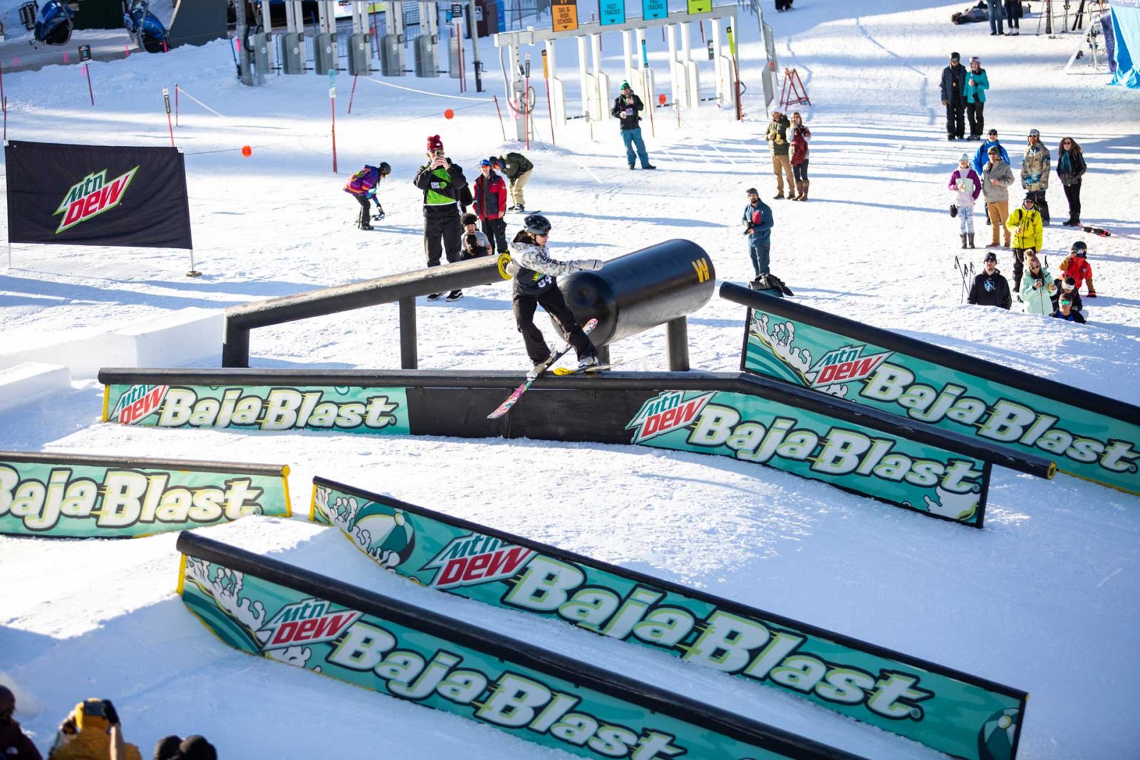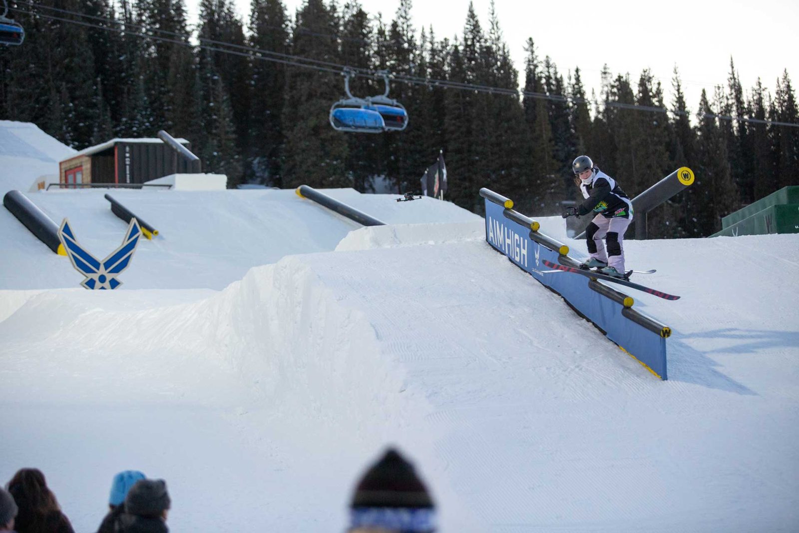 Next up, Marion Balsamo vs. Taylor Lundquist. Snow snakes are real: Taylor caught one right after a perfect 2 on to switch, and couldn’t slide the last rail in her second run, so Marion’s solid skiing secured her a spot in the finals.