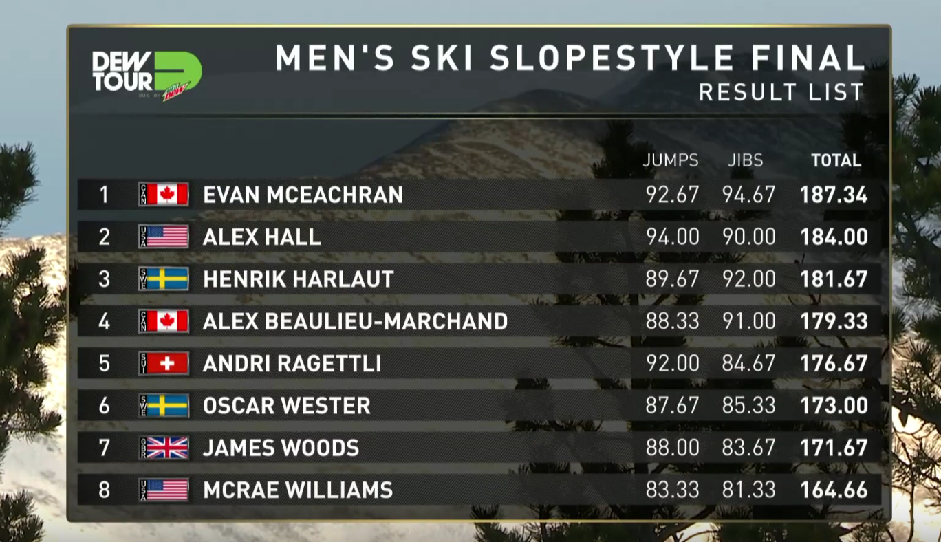 Alex Beaulieau-Marchand and McRae Williams both landed runs, but judging seemed to indicate that having “just” a 1080 in your run would make it hard to break into the top scores. At this level of competition, the 10s have become 14s, and the 12s are now 16s—at least, if you want to win.