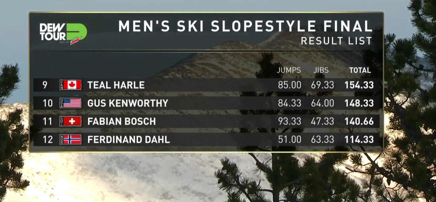 After the performances we saw during the Team Challenge on Thursday, anticipation was high for the Dew Tour Ski Slopestyle on Saturday, December 15. The unorthodox format, with jump and jibs split into two separate sections, gave riders the chance to shine with their best of three runs on both sections, a combined score determining the winner.