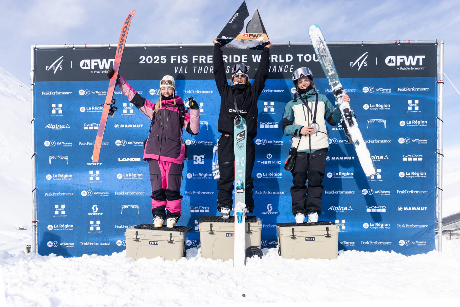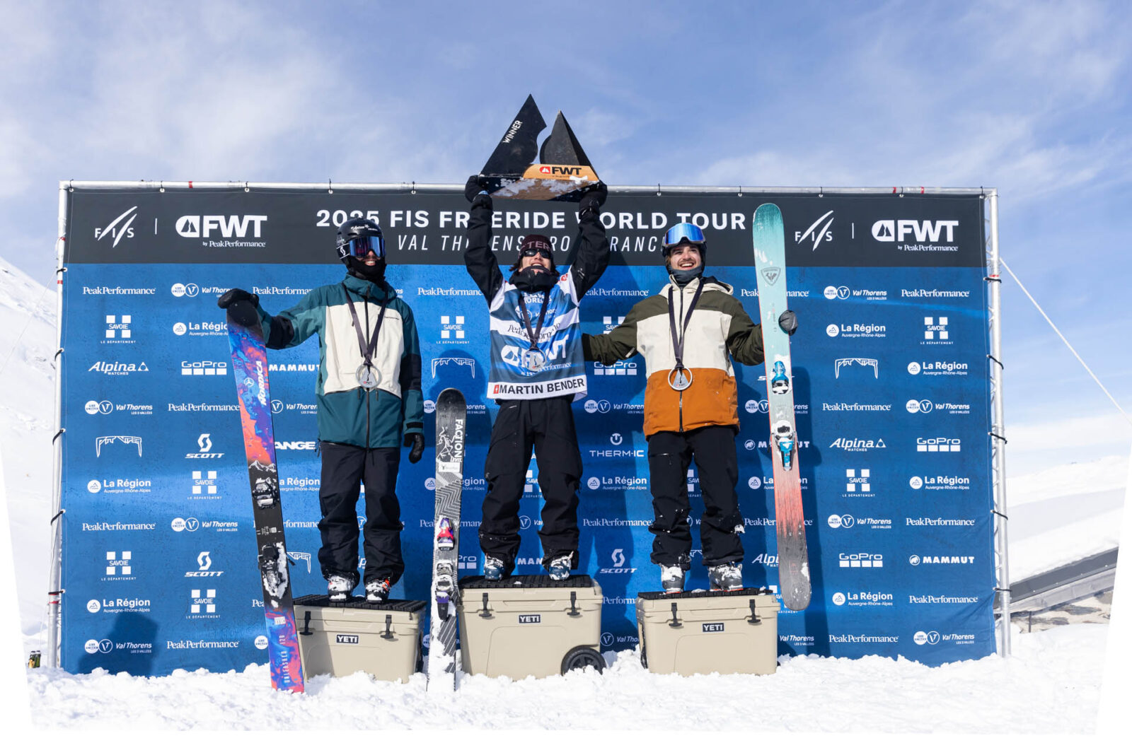 Places four through six in Val Thorens were all based on a line off the skier’s left starting gate. Germany’s tour rookie, Tiemo Rolshoven, was first on the course and opened this line with two good backflips over mid-sized drops up top, a very nice and deep 360 with a little trouble in the landing over a rock section and a fast bottom part including one more straight air. Frenchman and fellow rookie Mathys Fornasier, who had a rough start in Spain with a nasty fall, followed that same line with slightly bigger backflips up top which caused him to almost miss the drop over the rock section. He still managed to get a straight air in and made up for the miss with another backflip at the bottom. Finally, Oscar Mandin carbon-copied his countryman’s approach in the top section, but he managed to send the middle cliff with a better and deeper air, albeit without a trick. He then skied the bottom fast and controlled, adding in one more straight air. Oscar finished fourth, Mathys fifth and Tiemo sixth—so in this case the clean approach triumphed over the more technical approach with more tricks, just opposite to the top of the ranking. In contrast, Ben Richards as eighth scored rather low despite showing arguably the fastest, cleanest and most effortlessly looking run of the day on that very same line. The kiwi only tricked the top jump with a huge 360, though, and took everything else pretty straight while still amounting quite a bit of air time.