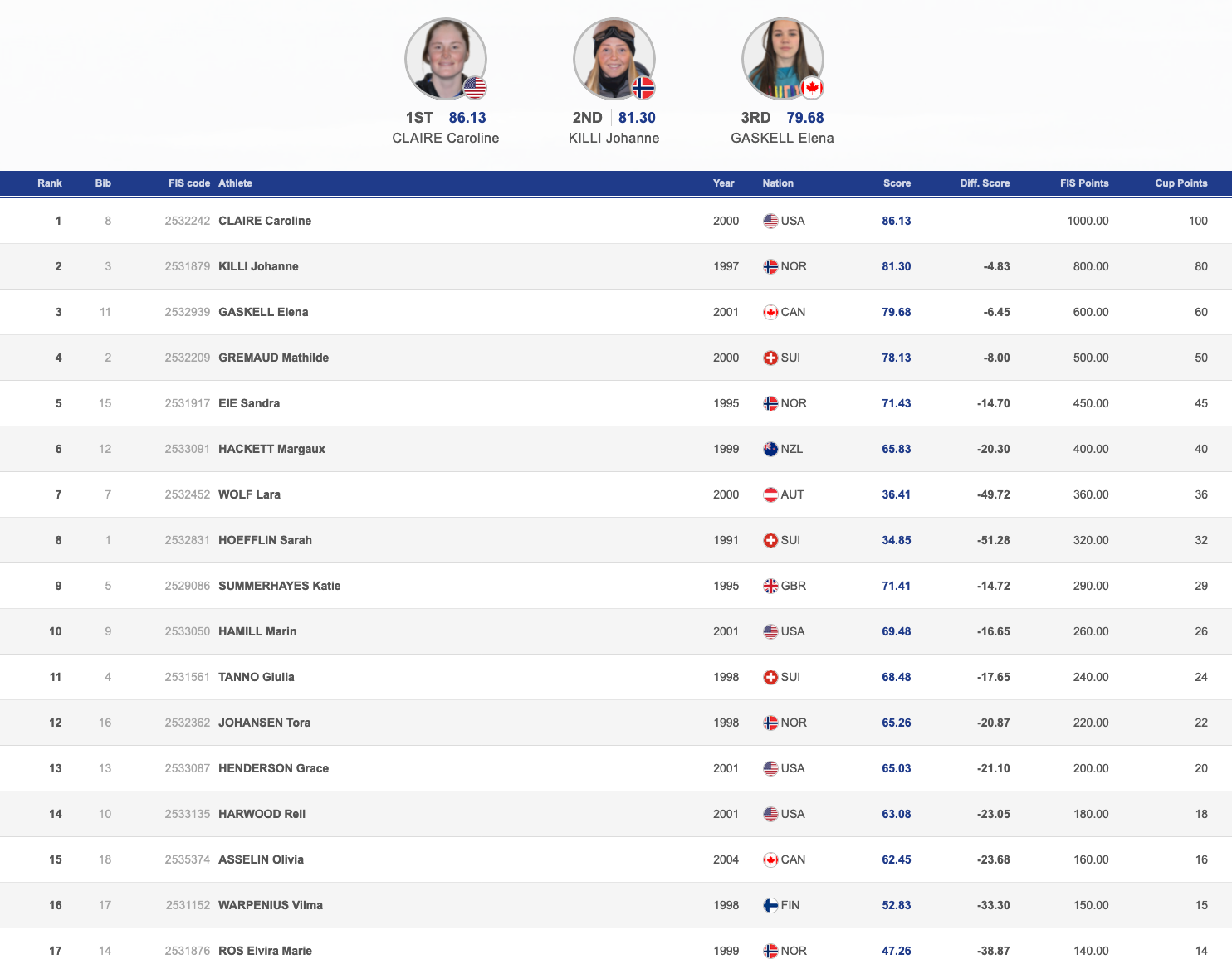 "I’ve been here a couple of times and I’ve skied well here, so I just kind of had a chill day," said Caroline Claire. "The course was really good and everyone was skiing great. I didn't have a great first run, but kind of pulled it together for my second run. I changed up my run last minute and added a switch 9, and it ended up being my highest scoring trick. I haven't done it in competition before, so it was pretty cool to land it."