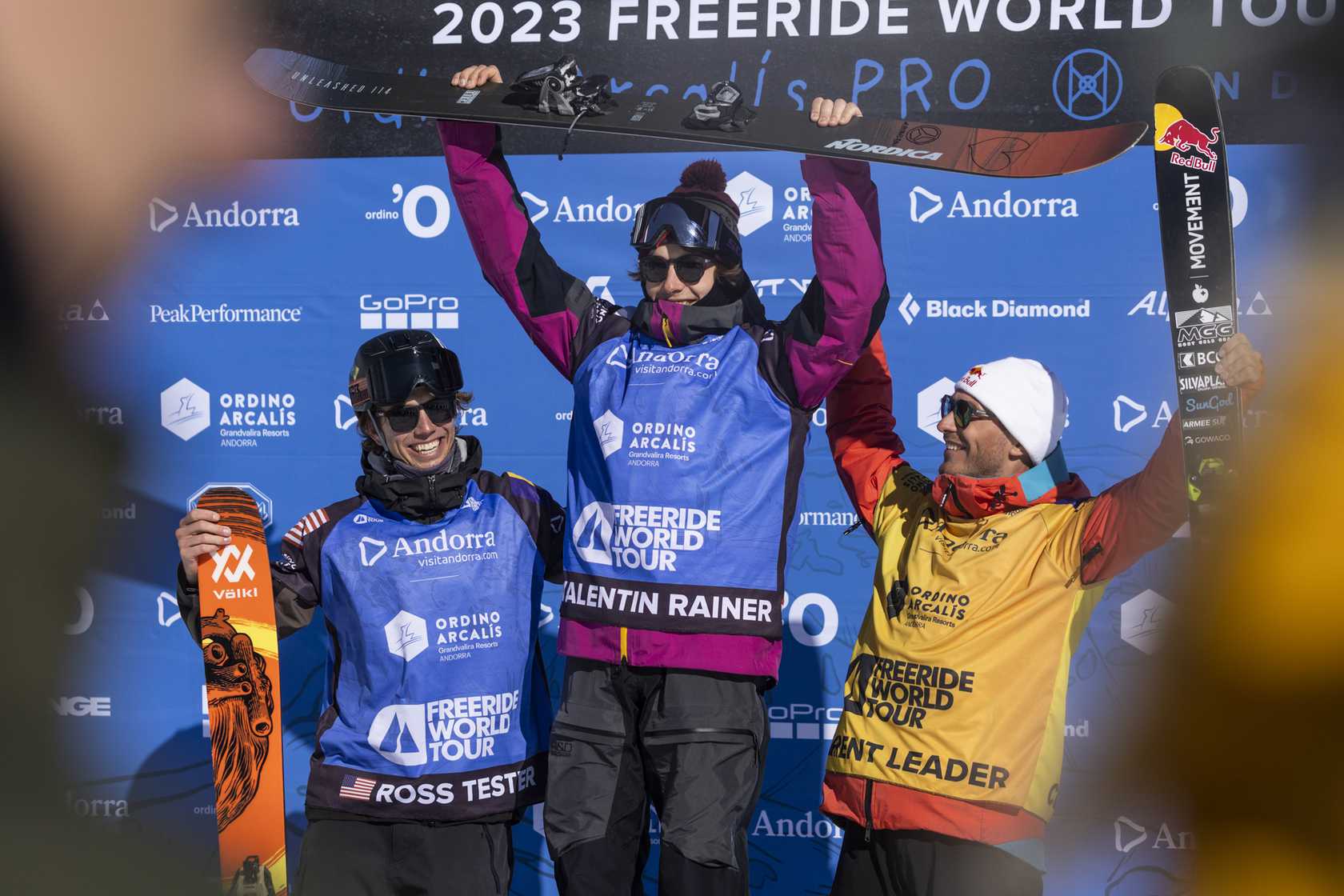 Ross Tester, no stranger to Andorran slopes, set the bar high with a run that felt almost formulaic for the FWT in 2023. The American laced two near-perfect 360s and a backflip, for a 90.00, and second place. Valentin Rainer also put together a textbook FWT run, with two 360s and two backflips. Overcome with emotion in the finish corral, the Austrian rider edged out Tester for the top step by a single point. He dedicated the run to his friend Christoph Schöfegger, who perished in an avalanche in Japan a few days ago.