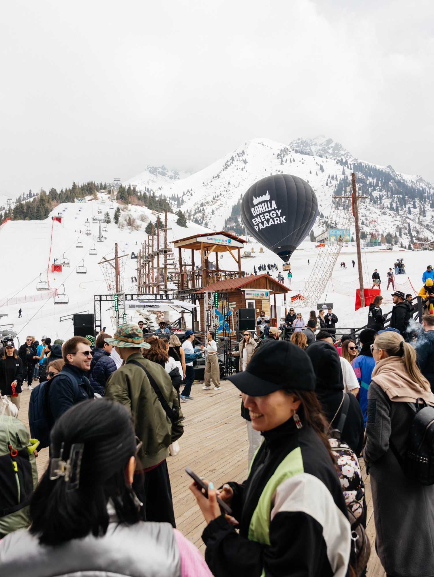 That’s not where GWJ took place though, the 7th year of the biggest freeski event in Central Asia moved to the Shymbulak base this year. With a Big Air Kicker, street-style jib setup and a Ski Jungle Cross course built just for the occasion. The village also put up a hot-air ballon, beerpong tables, popup shops, bars and two music stages that kept the tourists (and me) entertained throughout the 2-day event.