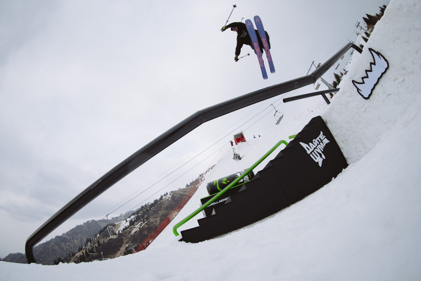 Which started off looking like a classic comp day, but the skies opened up minutes before the star of the show – the Battle. Taking place on the kicker it’s a novel concept for a ski contest. The 8 invited riders go head to head advancing up a bracket. Each round consists of a tech trick and a style trick (under 540). The better trick gets a point with a tie-break in case of a draw after two jumps. To spice things up, the riders get a Joker card to use once during the contest before a single jump. There’s three types – Choose The Grab, Spin Control and Knucle Huck. When any of these are used, both riders have to comply – do the grab, spin under the selected angle or hit the knuckle. These proved to be quite useful when used e. g. Maksim setting a screamin’ grab for Szczepan or Andrey using spin control to have a chance on the tech trick against Vince.