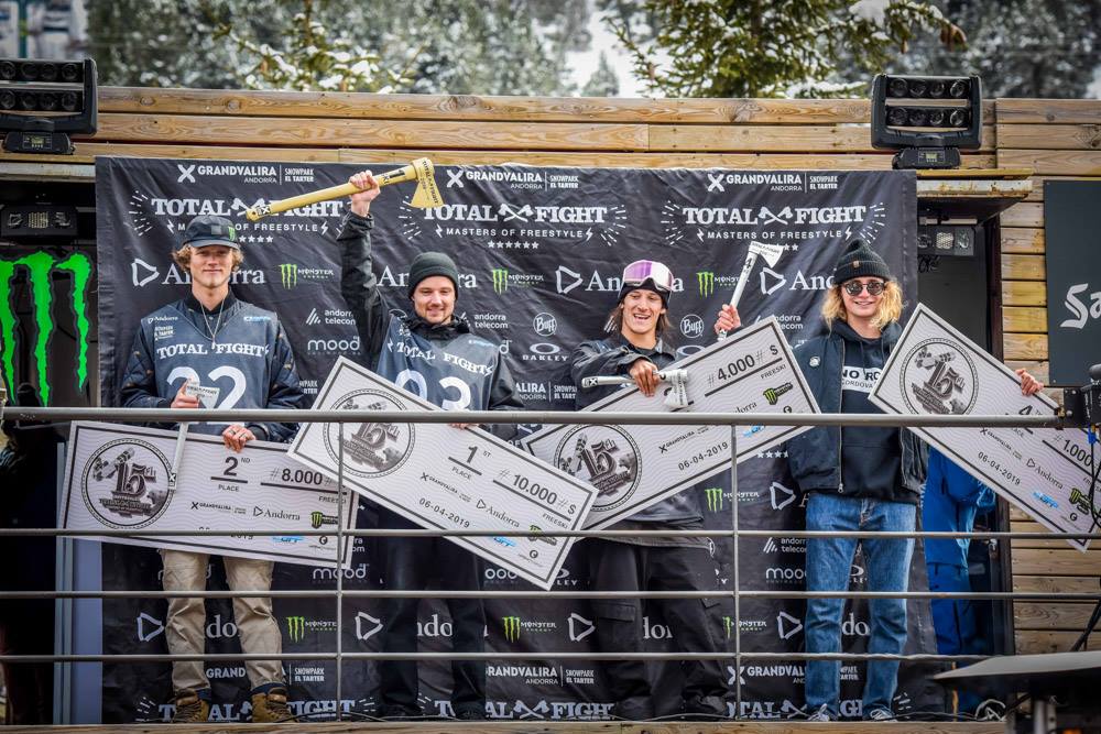 The 2019 Total Fight podium: Fabian Bösch (1st), Colby Stevenson (2nd), Javier Lliso (3rd), Finn Bilous (4th)