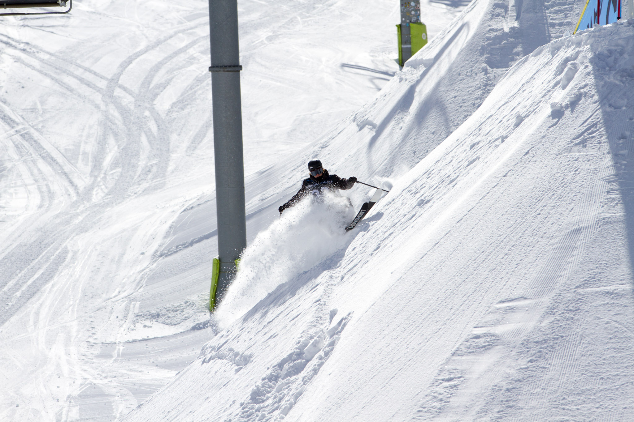 The competition concluded, your Downdays reporter indulged in a few powder laps with Spanish freeski OG Pako Benguerel, who happened to be celebrating his birthday, and several of the competing skiers. After making the most of a few fun runs, the squad headed down to Grandvalira’s apres-ski hotspot, the L’Aberset bar, for the awards ceremony, where Bösch accepted his ceremonial victory hatchett—the third he’s been given already this spring. “I didn’t get a lot of good results in slopestyle this year, so I’m really happy to take the win here,” he said.
