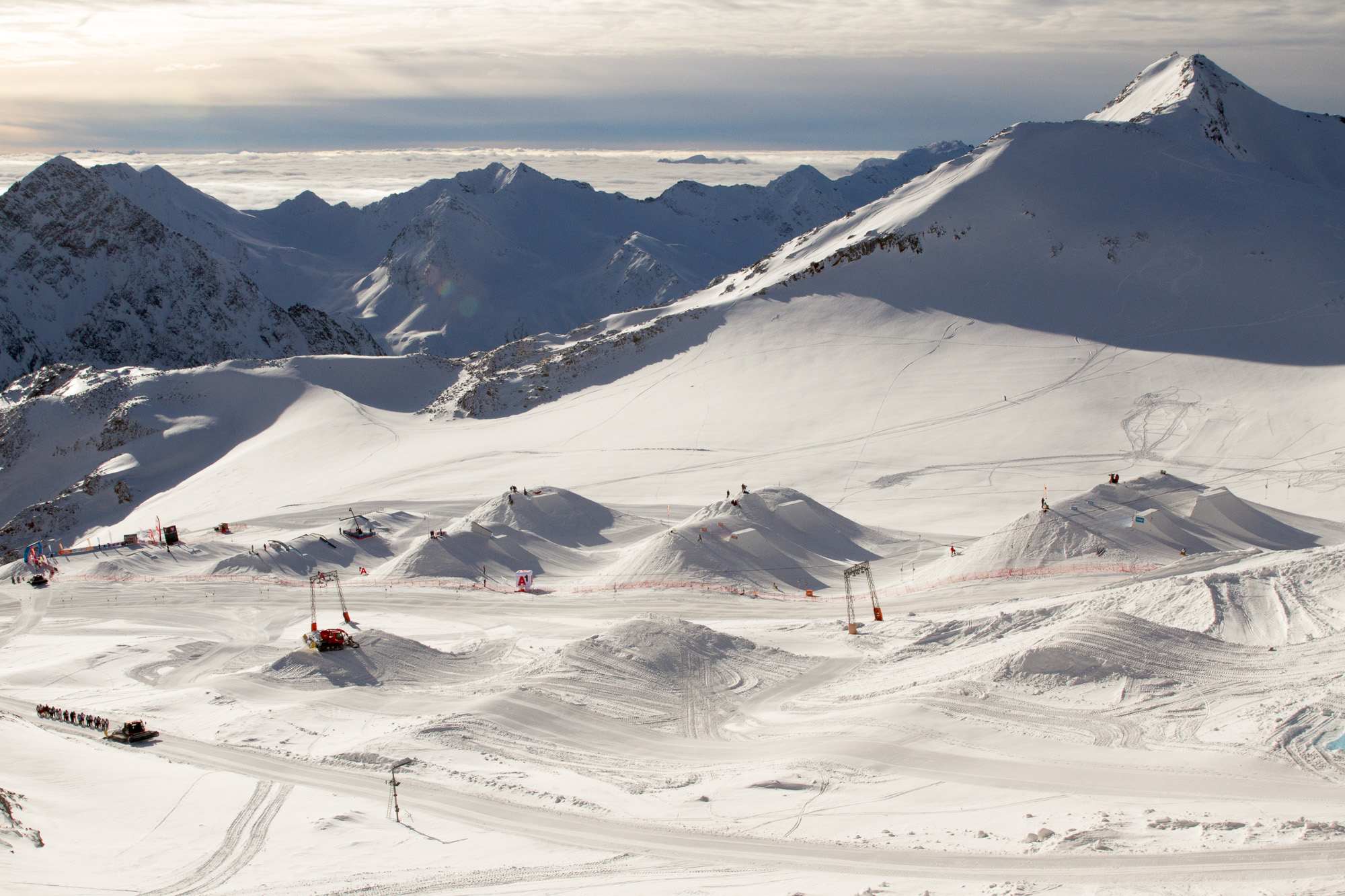 The south-facing slopes of the Stubai Zoo terrain park are a dream come true for the snowpark crowd.