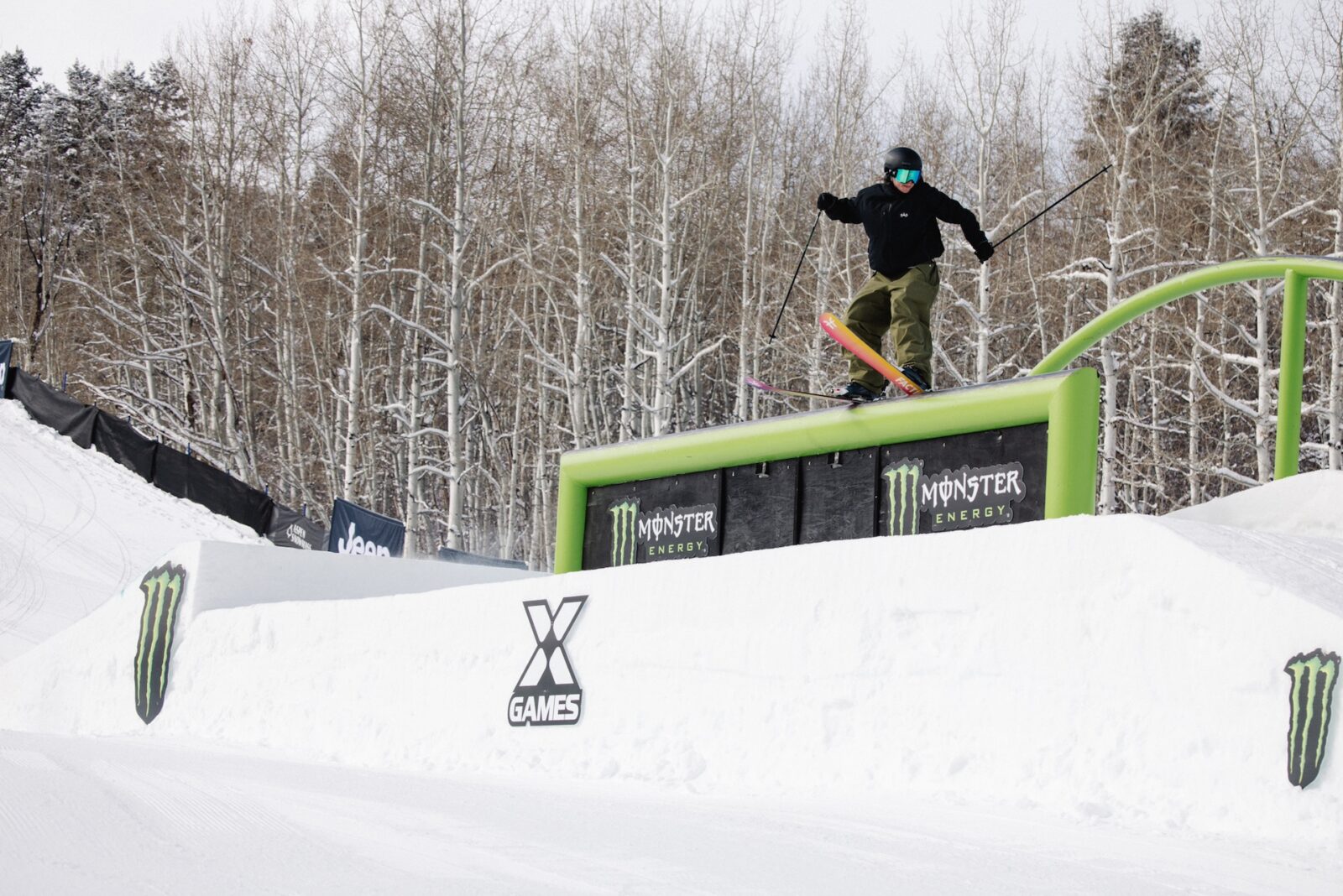 Just to be clear, there is absolutely no controversy surrounding Scottish skier Kirsty’s win. She put down an almost flawless run that was miles ahead of the rest of the field. She started with a left 270 continuing front 270, switch left 270 pretzel 450 out and right foot back 450 on the rails, all as clean as you like. In the jumps she went switch left alley-oop 540 japan and then, for the first time in her career, linked back-to-back doubles with an unnatural right double cork 1080 safety into a left double cork 1440 cindy. She was hooked up with a 93.66 that no one was able to get anywhere near for the rest of the competition.