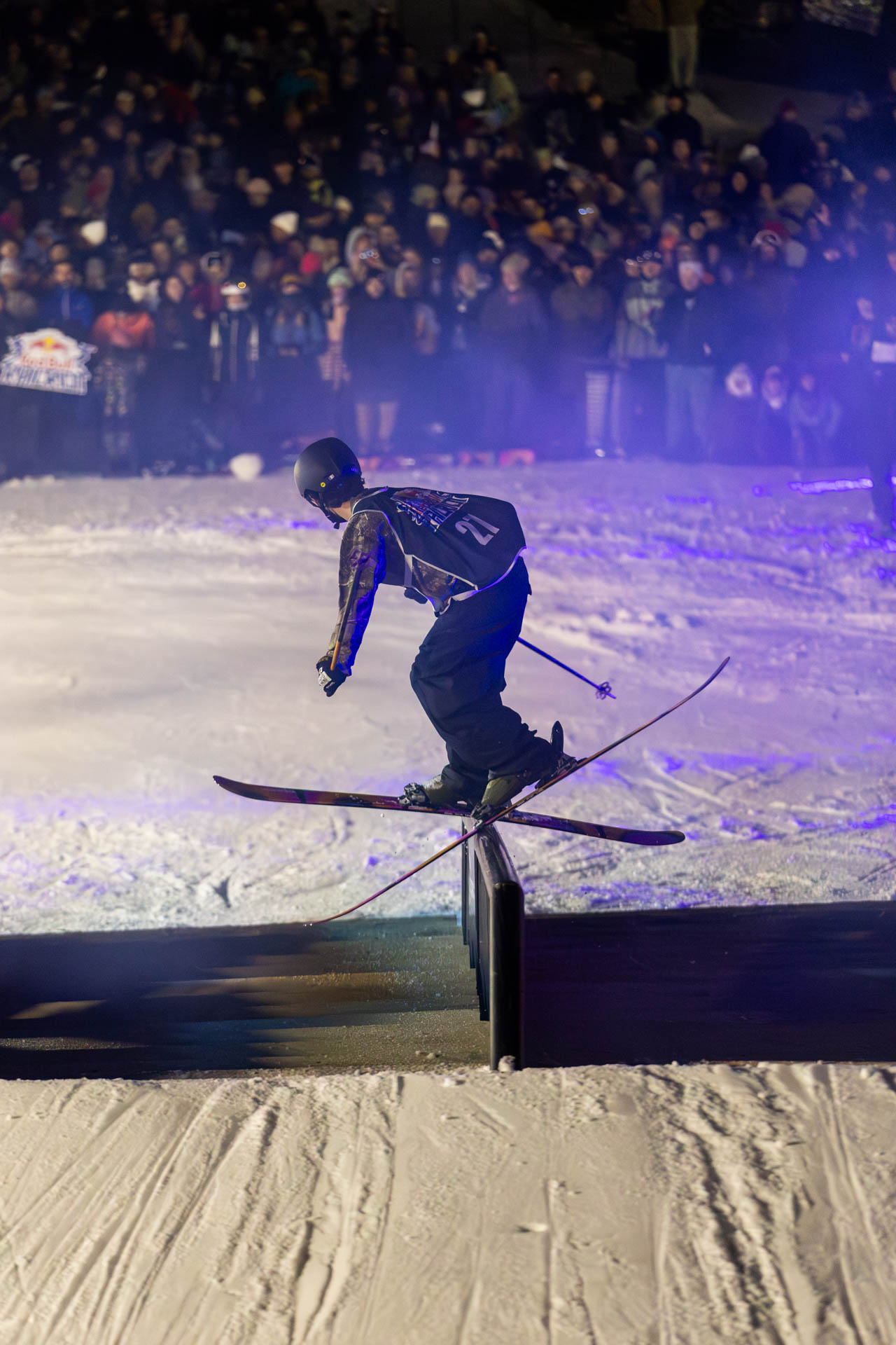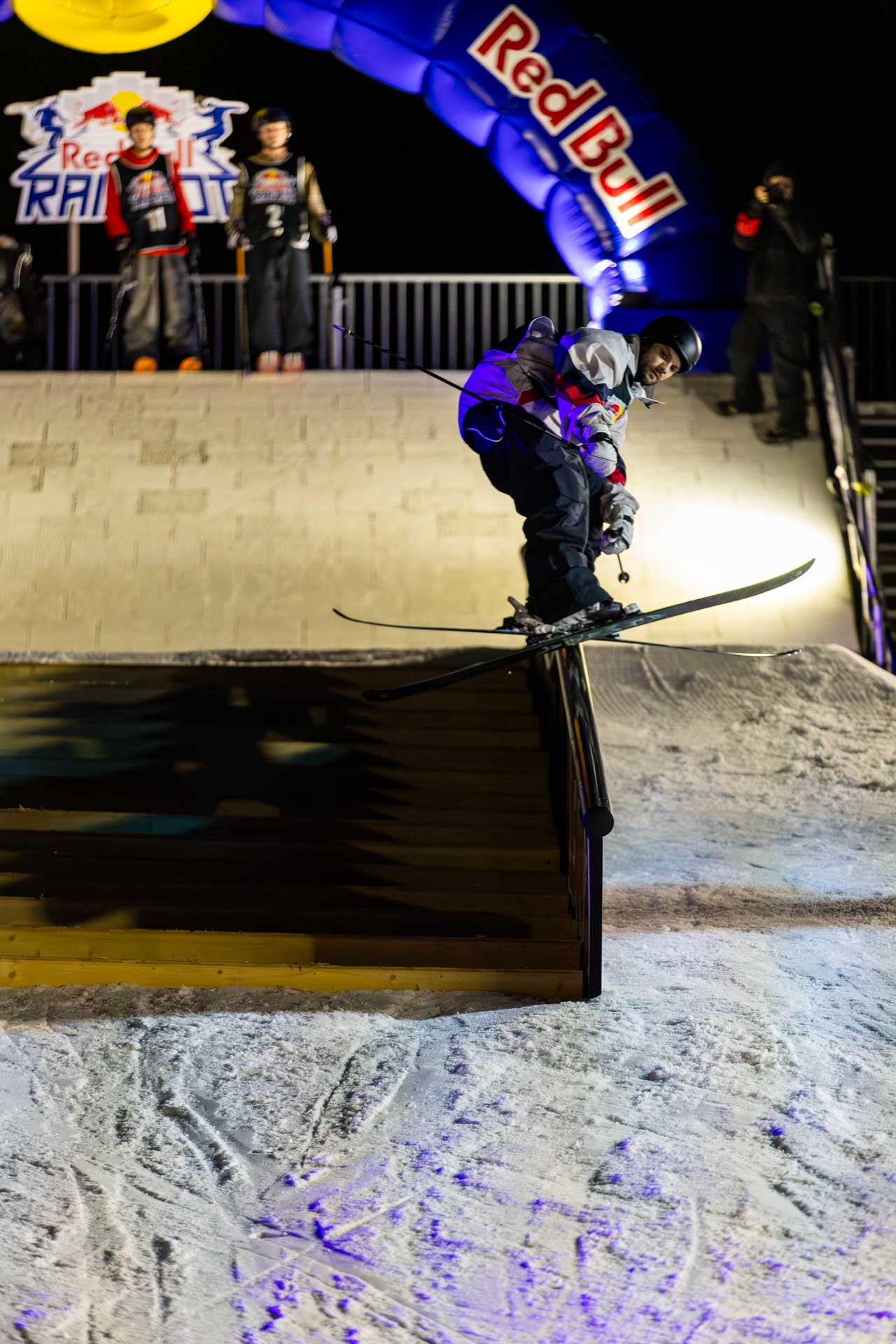 But enough critiquing of the fit—let’s get to the contest. This year’s Laax Open slopestyle course was more straighforward than usual, eliminating the quarterpipe and final rail section that set this course apart in the last few years, and replacing them with a big roller with sides for takeoffs. While it was a shame to lose the quarterpipe, the bottom rail section had always been more of a heartbreak feature than anything else—offering little upside potential and a whole lot of downside for competitors at the end of their runs. The new roller, in contrast, pushed riders to show off their creative side and mastery of the dark arts of buttering.