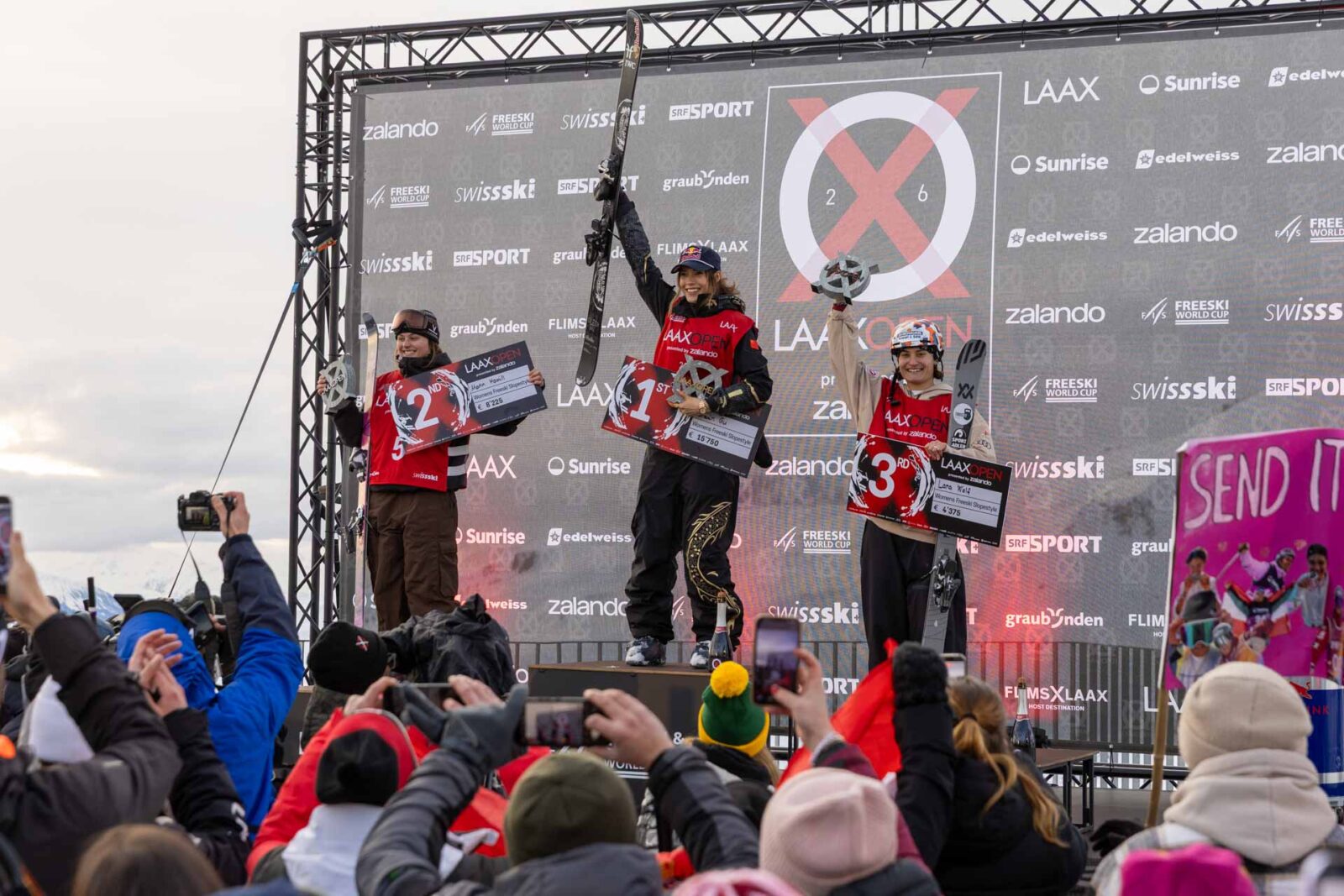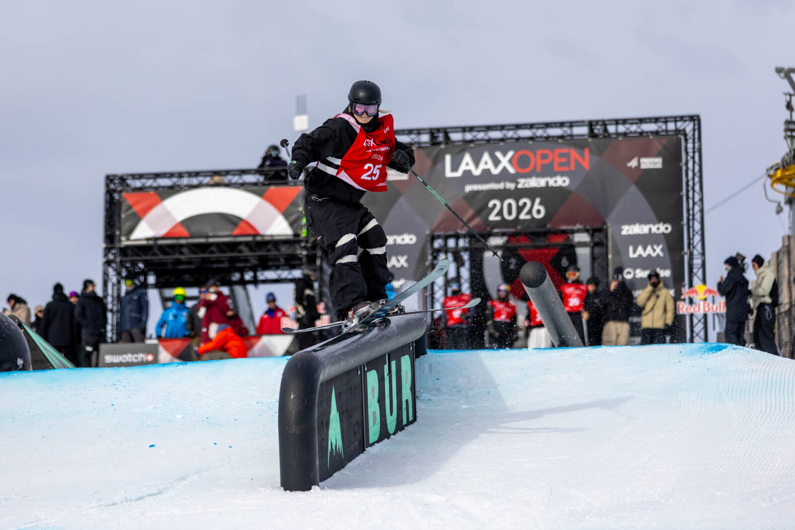 On the men’s side, Colby Stevenson and Matej Svancer won their qualifying heats, pursued by the Norwegian double-punch of Birk Ruud—who won the last two Laax Open slopestyles—and Tormod Frostad. A trio of hopeful Swiss riders—Andri Ragettli, Kim Gubser and Nils Rhyner—kept hometown hopes alive, while heavyweights like Evan McEachran, Hunter Henderson and Milo Tabanelli looked to upset the apple cart.
