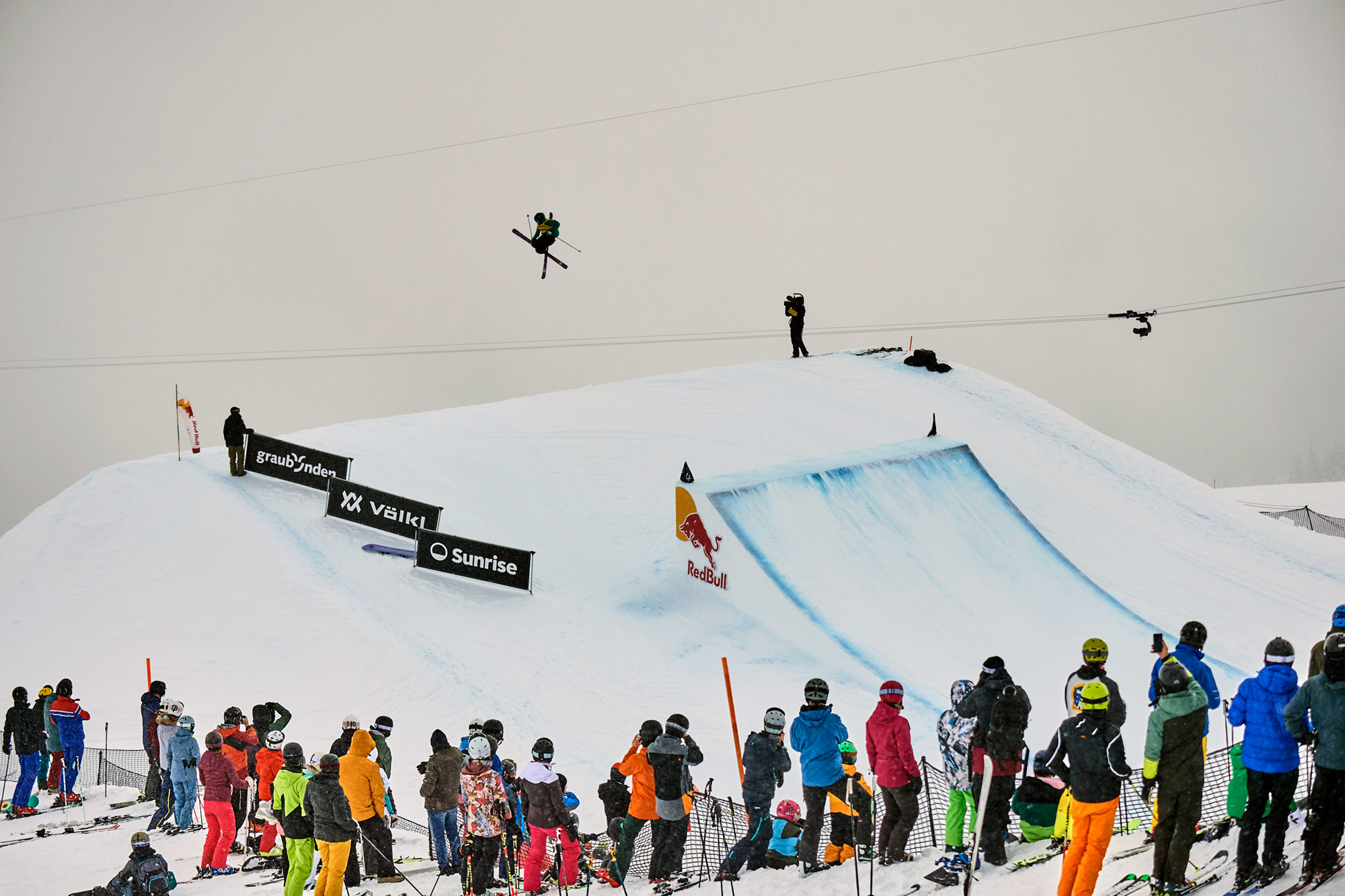 Given the weather, we’re lucky that these men’s finals took place at all. Over the week, Mother Nature threw everything she had at Laax: subzero temperatures, fresh snow, wind, clouds and fog turning the pristine slopestyle course into less of a playground and more of an obstacle course. On Sunday, the weather let off just enough for the men’s finals to go down, although it was a close call.