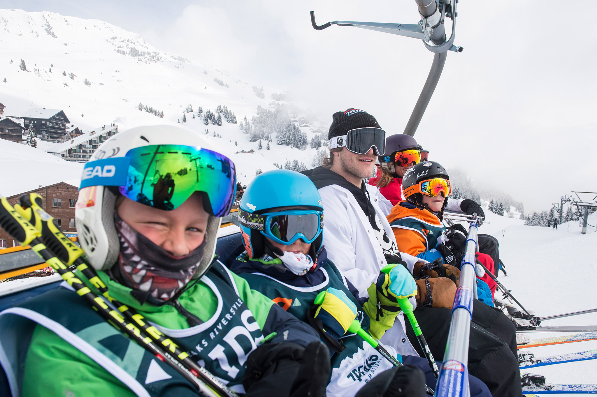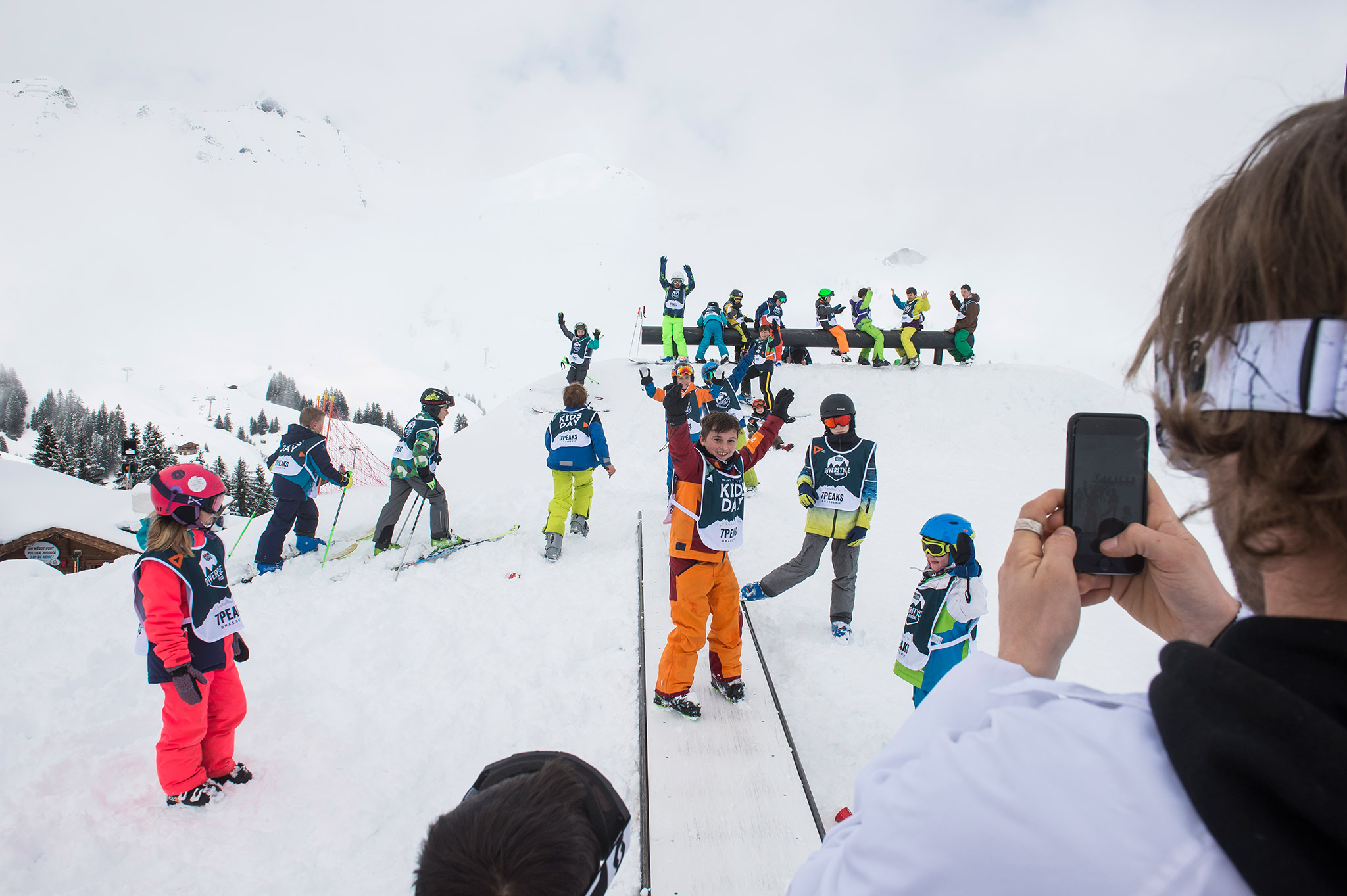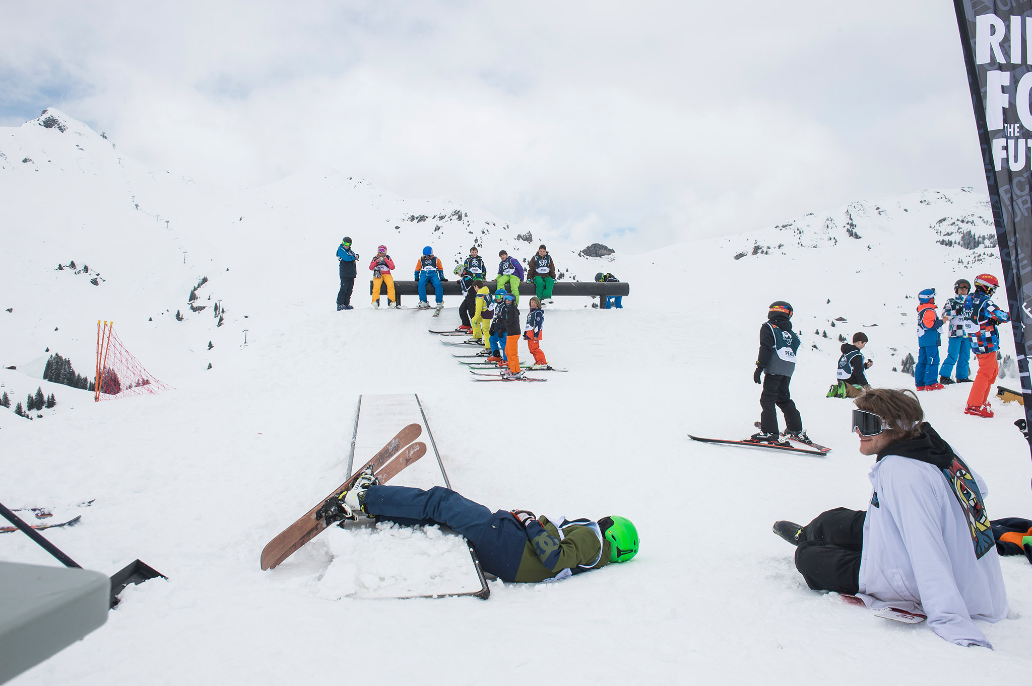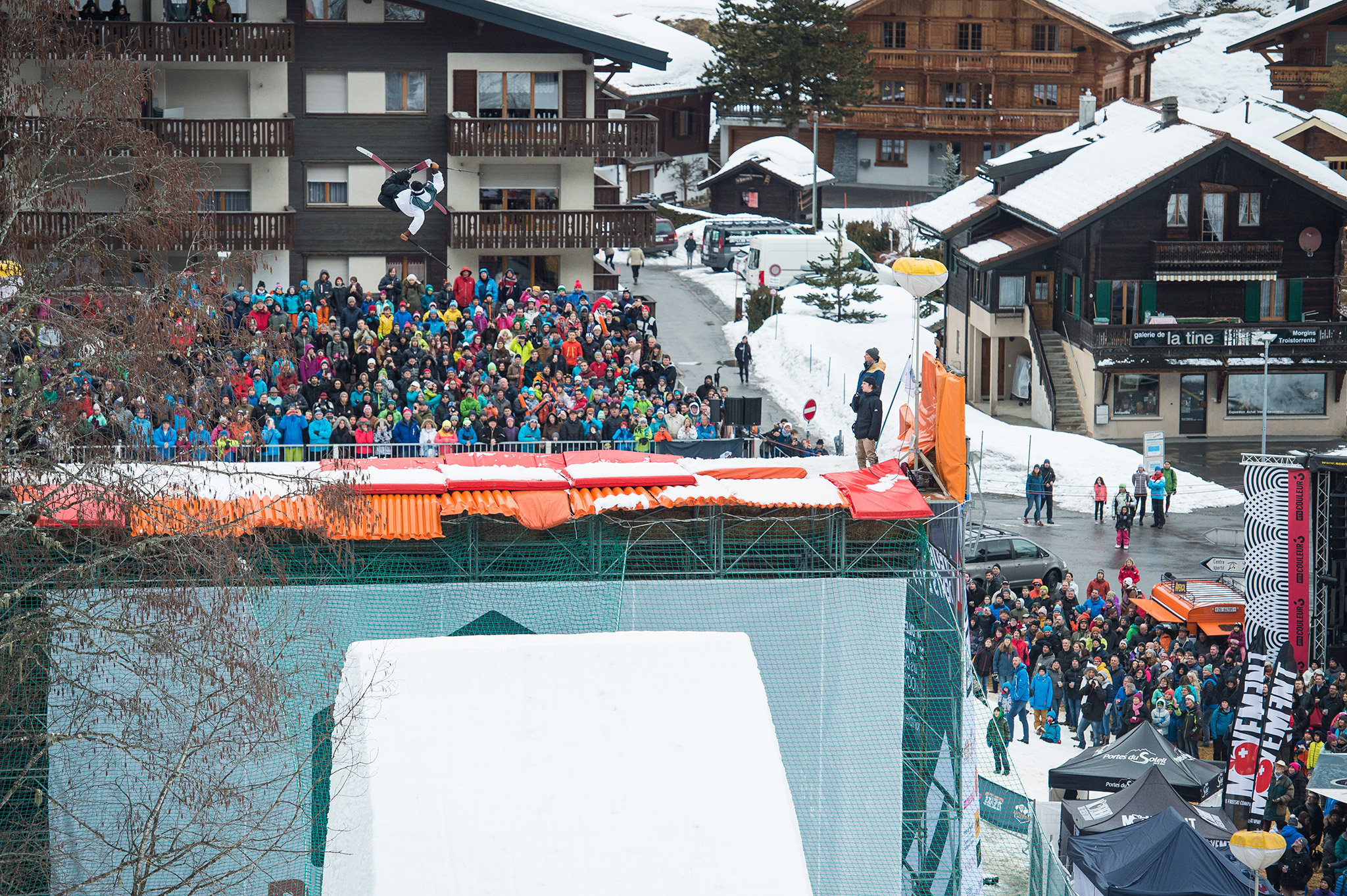 Before the show on Saturday, the Riverstyle riders headed for the local park at Les Crosets, Superpark CH, for a ski day with the local kids. “Eighty kids showed up, it was crazy,” reported De Martin, one of ten Morgin locals who organize Riverstyle. “Really amazing vibes, and the kids were so stoked.”