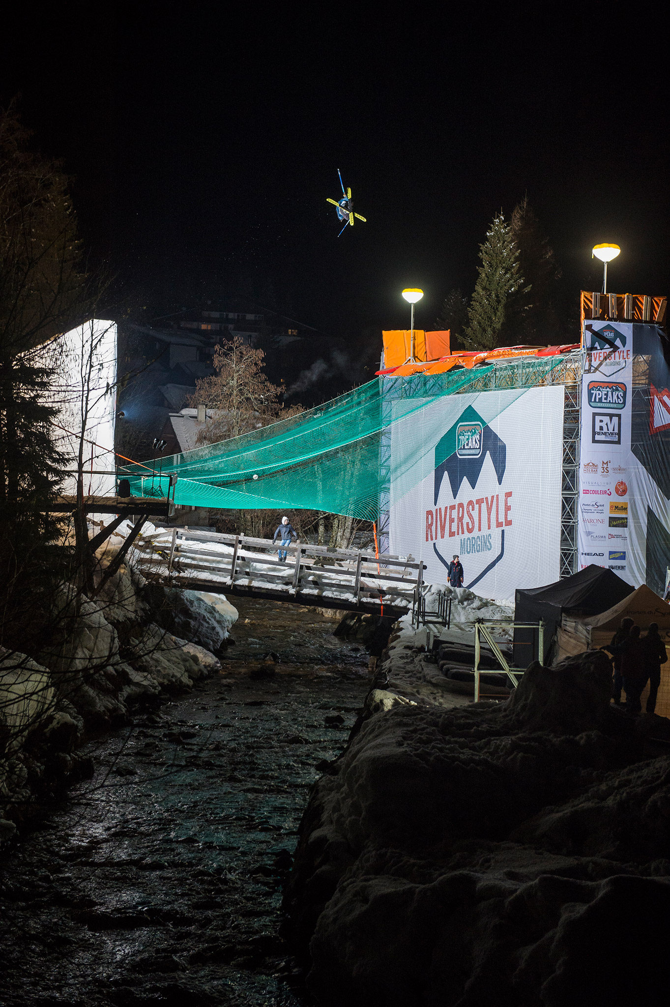The third edition of Riverstyle went down last weekend, with over 4,500 spectators watching as a crew of crazy skiers and boarders brought their tricks to the event’s signature jump: a gap of over twenty meters across the river running through the middle of town.