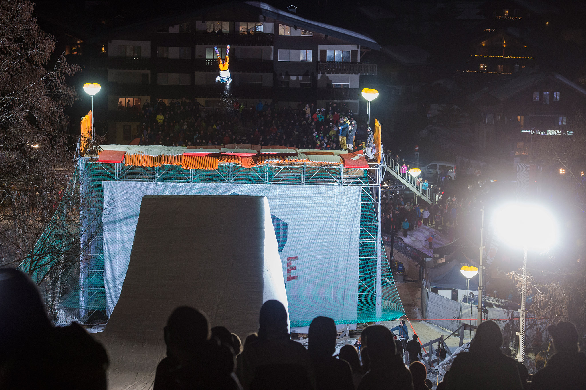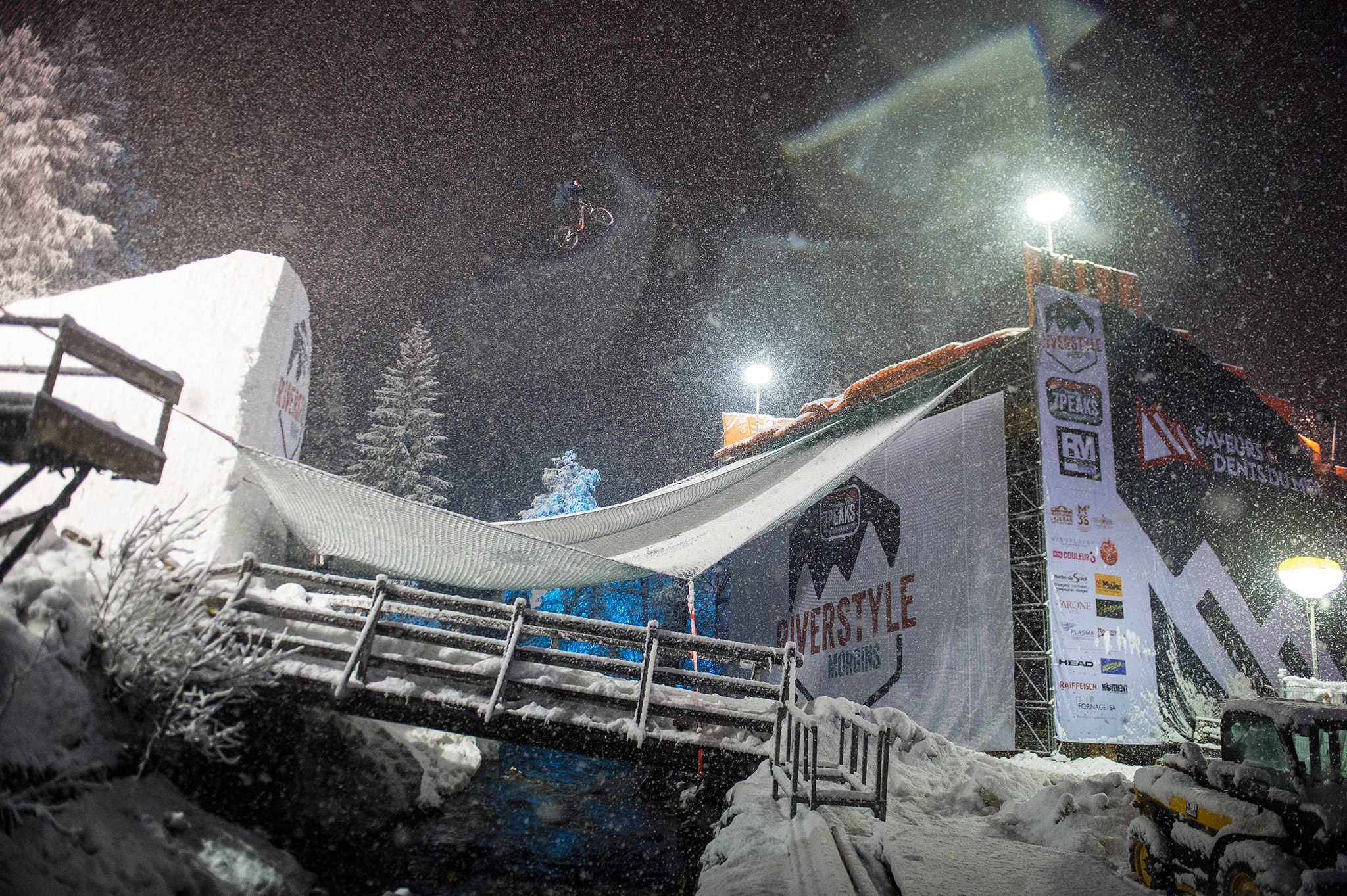 This river death gap was not to be trifled with, and the fickle spring weather caused the Friday session to be called off due to sticky snow—which still didn’t stop Vincent Tupin from jumping the gap on his bike. But the Saturday night showdown went off without a hitch, with perfect conditions, a high level of riding and Swiss rider Till Matti taking the Riverstyle title.