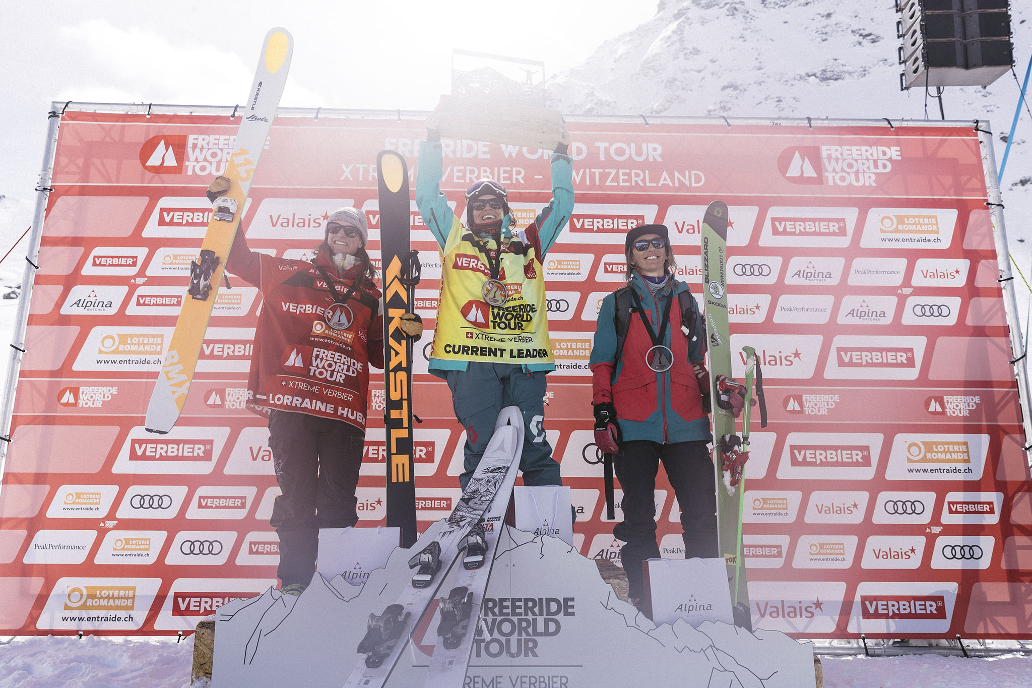 2018 Freeride World Tour Women´s Ski Overall Podium: Arianna Tricomi, Eva Walkner, Lorraine Huber. Photo: freerideworldtour.com/Jeremy Bernard