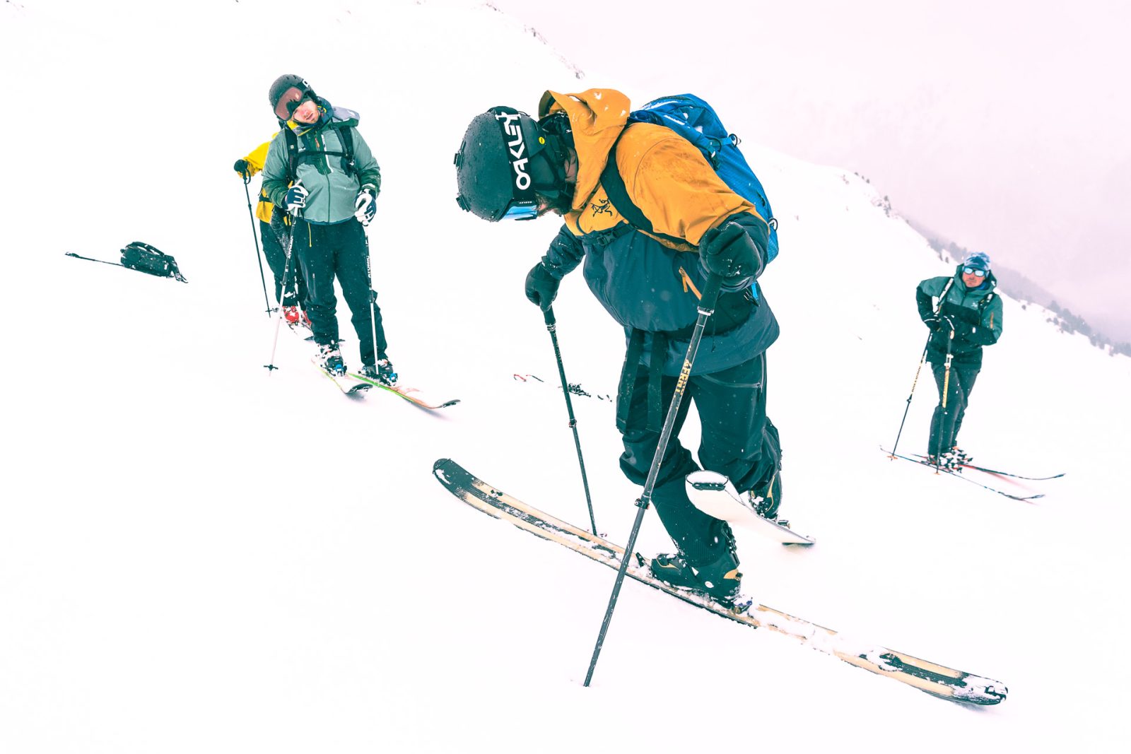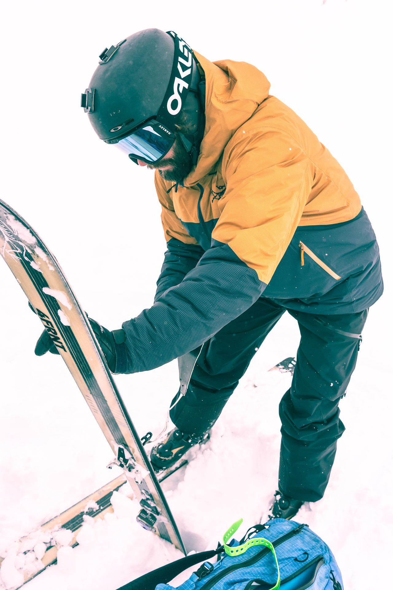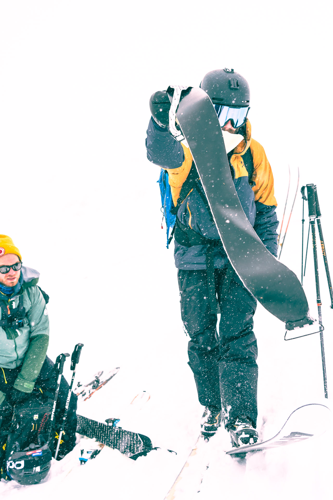 Eric Hjorleifson: The activity of backcountry skiing is very experience-based and you have to have the right approach. It’s an important question, what that right approach is. I’d say, it’s excellent if you already have the skiing—the downhill skiing and the freeriding—and you’re able to deal with all kinds of conditions while going down. I mean, that’s a huge advantage. But you have to start at the beginning of uphill skiing, terrain management, route planning, weather, avalanches… There’re so many factors. I mean, this event is exactly that. That’s the Arc’teryx Freeride Academy, a bunch of pro athletes and local guides. It’s an opportunity for people of all abilities, even if they’re quite advanced, to maybe find the right activity, the right clinic. To go out with mountain guides or ski guides is such a resource! In the modern times—we talked about it a bit today—the activity of a guide, the role of the guide has really evolved. It has been for a while in Canada, but I think it’s similar here now, where mountain guides are more of a mentor and they’re providing an education with each experience, not just taking you out and you’re having a great time because you’re with someone who knows.