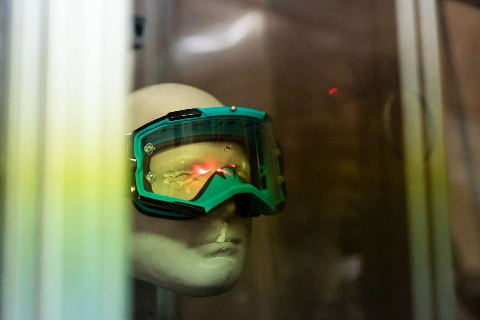 When the finished lens and equipped frame are combined, a finished product has been achieved. It’s not the end of the process at Scott GmbH, however, since every google gets tested before leaving the factory. They test not only the light transmission, but also the symmetry of the goggle. If the frame or the lens is off-axis, light won’t hit the lens (and consequently the customer’s eye) as intended, resulting in inferior performance. A pair of Scott goggles will hit the market only after proving its quality at a test stand.