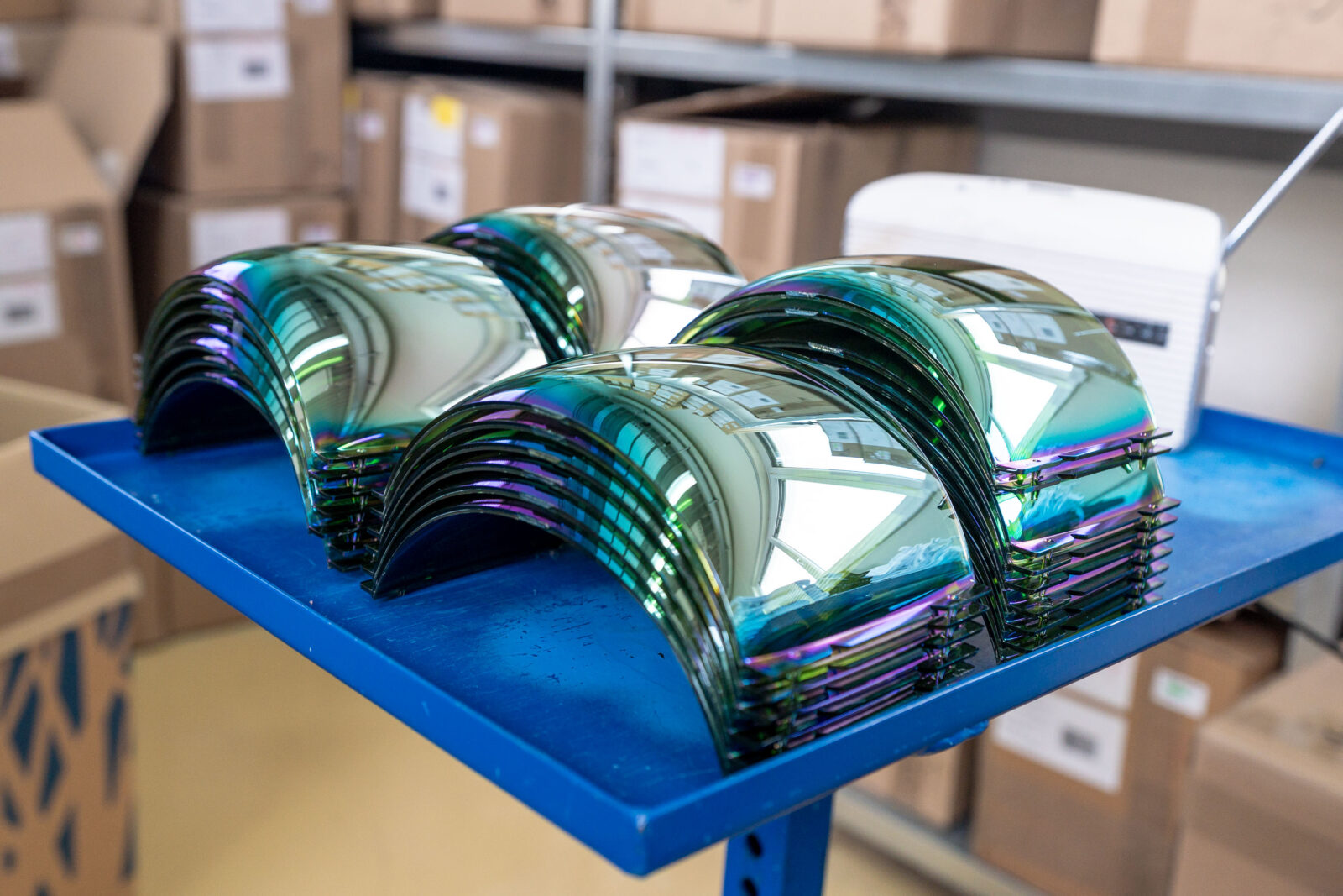 What matters, though, is how the lens blanks are further processed to fit the specific goggle frames and how the goggle is generally designed. Every lens has the optical quality of light refraction, which varies depending on the angle with which light hits the lens. A good goggle design needs to make sure that light hits the lens as uniformly as possible across the whole lens, while also keeping the lens close to the skier’s face. The process of machining the lens blank into form according to the goggle design is performed by high-quality, automated grinding machines and may require a different amount of runs, which in turn effects the production cost.
