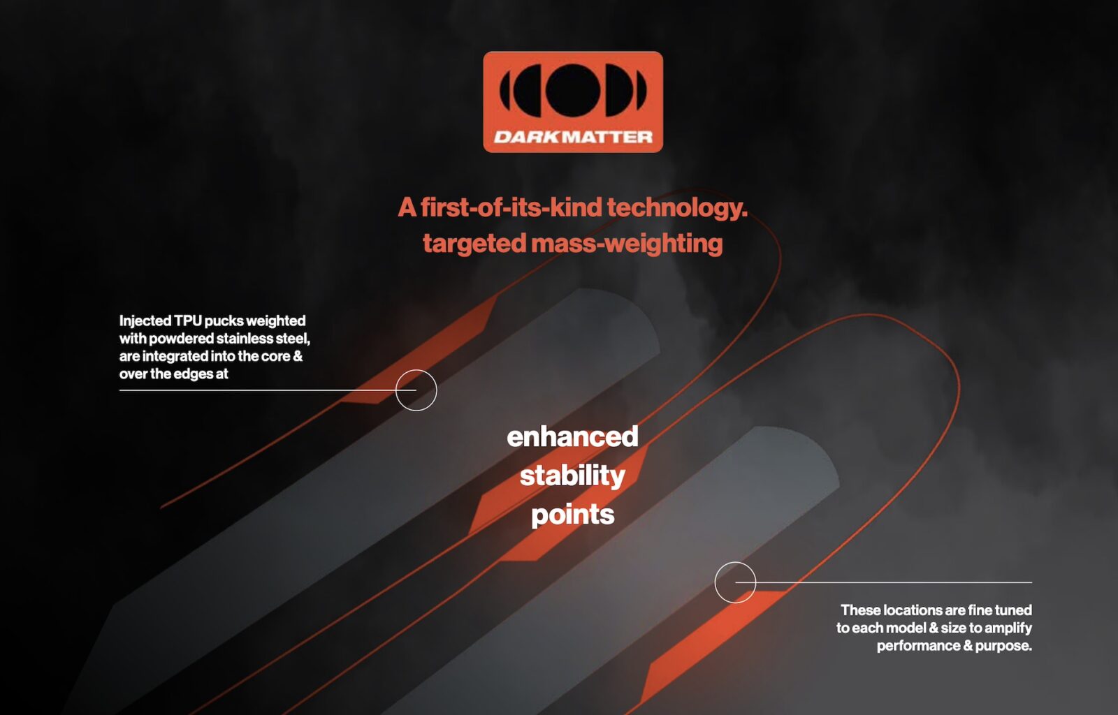 Rather than full sheets of metal, K2 uses two strips of titanal running through the ski to create a strong backbone without overloading it. Combined with the targeted weighting of Dark Matter, this means: